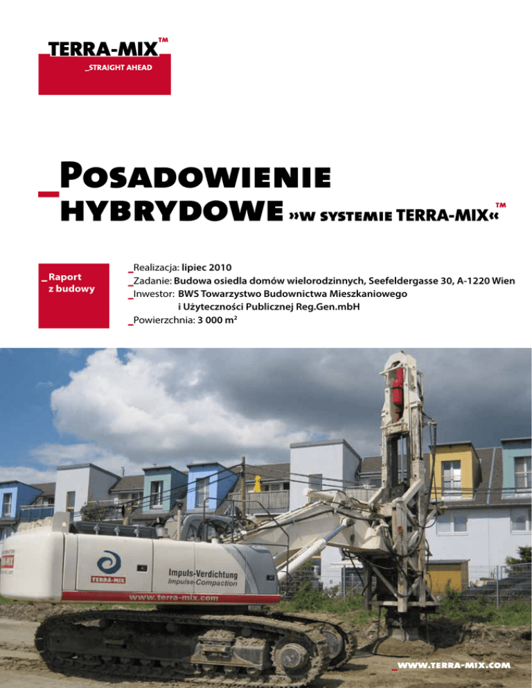 _Posadowienie hybrydowe »w systemie TERRA-MIX« _ Raport z budowy _Realizacja: lipiec 2010 _Zadanie: Budowa osiedla domów wielorodzinnych, Seefeldergasse 30, A-1220 Wien _Inwestor: BWS Towarzystwo Budownictwa Mieszkaniowego i Użyteczności Publicznej Reg.Gen.mbH _Powierzchnia: 3 000 m2 _ Raport z budowy Definicja problemu: W celu bezpośredniego posadowienia niepodpiwniczonych budynków mieszkalnych należało wzmocnić podłoże gruntowe. Między wierzchnią warstwą humusu, a zalegającymi niżej nośnymi warstwami średniozagęszczonych żwirów i pospółek znajdowały się, do głębokości 2,6m warstwy luźnych piasków pylastych oraz pyłów. W celu zmiany uziarnienia, dodatkowo przy zmiennym zwierciadle wody gruntowej oraz dla zapobieżenia niekontrolowanym i zbyt dużym osiadaniom, zaplanowano pierwotnie wymianę gruntu na chudy beton do głębokości 2,8m. Ze względu na duże koszty i niezwykle długi czas realizacji takiego posadowienia, zaczęto poszukiwać alternatywnego rozwiązania. Rozwiązanie: Pod względem technicznym i ekonomicznym, najbardziej korzystnym rozwiązaniem okazało się posadowienie budynków w technologii posadowienia hybrydowego w systemie TERRA-MIX. A uKrok f g a b1:e n s t e l l u n g : Poprawa parametrów mechanicznych piasków pylastych füri den Bau der nicht unterkellerten pyłów z jednoczesnym wykonaniem Wohnhausanlaplatformy roboczej o grubości przezverbessert zmieszanie werden. warstw gruntu ge sollte der 45cm, Baugrund zwischen z przygotowanym, dla tego zadania, środkiem wiążącym. dem mutterboden (humus) und dem mitteldicht gela2 Evd > 35 MN/m . gerten Kies ist eine locker gelagerte zwischenschicht Krok 2:n g : Lösu Zagęszczanie impulsowe, w wielokrotnych przejściach roboczych z wypełnieniem lejów materiałem Es wurde wraz die „hybridgründung System TErrA-miX“ zgewählt. domieszką środka wiążącego. magerbeton bis in eine Tiefe von 2,8m vorgesehen. 1 . S c3: hritt: Krok Wykonanie mrozoodpornej, zastępczej płyty nośnej Verbesserung des schluffigen feinsandes bzw.ETS zugleich w systemie TERRA-MIX o grubości 45cm, przez zmieszanie herstellung des Arbeitsplanums in einer Schichtstärke na miejscu gruntu z dodatkiem, przygotowanego dla tego von 45cm durch Einfräsen eines auf den Boden abgezadania, środka wiążącego. W ten sposób powstała zastępcza stimmten Bindemittels. Evd>35mN/m2. płyta nośna służy do równomiernego rozłożenia obciążeń na podłoże i przeniesienie ich do głębszych warstw nośnych 2 . S ckolumny h r i t t : impulsowo zagęszczonego gruntu. przez Evd > 70 MN/m2 . imPULS-VErDichTUNg in mehreren Arbeitsübergän- Um die Bauzeit zu verkürzen und dadurch den Bauab- gen und Wiederauffüllung der Setzungskegel mit Bin- lauf zu optimieren, wurde eine Alternative gesucht. demittel verbessernden Boden. aus schluffigen feinsand bis sandigen Schluff in einer mächtigkeit bis zu 2,6m. Um eine Kornumlagerung bei schwankendem grundwasser und die dadurch zu erwartenden Setzungen zu verhindern, war ein Aushub und Auffüllung mit 3.Schritt: herstellung einer frostsicheren „Ersatztragschicht System TErrA-miX“ in einer Schichtstärke von 45cm durch Einfräsen eines auf den Boden abgestimmten Bindemittels. Diese Ersatztragschicht dient als lastausgleichende Schicht über den Verdichtungssäulen. Evd>70mN/m 2. WN ca. -1,3m (-1,59) 0,20 0,20 humus humus (-2,30) (-2,80) (-3,10) (-3,60) (-3,80) 0,80 0,50 0,30 0,50 0,20 1,00 1,50 1,80 2,30 2,50 piaski drobne,schwach lekko pylaste, ciemnobrązowe feinsand, schluffig, dunkelbraun piaski drobne,schwach lekko pylaste, brązowe feinsand, schluffig, braun piaski drobne,grau szare feinsand, żwiry piaszczyste, szare Kies, sandig, grau drobneżwiry i pospółki,sandig, piaszczyste, brązowe fein-i średnioziarniste bis mittelkies, schwach braun szare 1,10 żwiry, Kies,piaski, sandig, grau (-4,90) 3,60 -4,90 Rezultat: Ergebnis: Dzięki zastosowaniu posadowienia hybrydowego w systemie TERRA-MIX zostały w pełni wykorzystane Durch den Einsatz der „hybridgründung System właściwości gruntu rodzimego, wytworzono TErrA-miX“ konnten ressourcen geschont, die wysokowartościowe podłoże do bezpośredniego Bauzeit verkürzt und eine gründungsvariante posadowienia oraz wydatnie skrócono czas budowy. mit sehr hoher Qualität hergestellt werden. _ZAGĘSZCZANIE IMPULSOWE _STABILIZACJA GRUNTÓW _RENOWACJA T E RRA-M I X TE RRA-MIX Boden-DRÓG Bu l gari a E OOD stabilisierungs GmbH _BARIERY DROGOWE A-8 52 1 We tt m annstätten Schönaich 96 TERRA-MIX sp. z o.o. T E RRA- MIX H u nga ry Kft. TERRA- MIX sp. z o.o. _Polska PL- 5 6 - 4 0 0 O le śnica H -97 0 0 _Węgry Szomba t he ly_Słowenia _Rumunia BG-60 0 0 Star a _Austria Z ag o r a_Niemcy _Bułgaria ul. W ile ńsk a 14 Semme lwe is ut 2 Po p Mi n ch o Kan ch ev 84 TERRA-MIX Bodenstabilisierungs GmbH ul. Wileńska Schönaich 9614 PL-56-400 Oleśnica A-8521 Wettmannstätten TERRAMIX T_ 30722-0 T_+43 +483185 71 725 37 39 F_ +48 71 718 23 30 De utschla nd E_ [email protected] D- 9 0 4 3 9 N ür nber g www.terra-mix.com Wa lle nst e inst r asse 4
