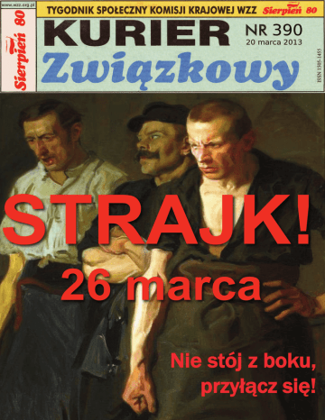 STRAJK! 26 marca Nie stój z boku, przyłącz się! Klimat do strajku Różni polityczni i medialni celebryci już zaczęli pouczać, że strajki nie przynoszą niczego dobrego. Widać zapomnieli, jak kiedyś wspierali te „dobre” strajki – skierowane przeciwko poprzedniemu systemowi. A potem przestali je wspierać, gdy zaczęli służyć tym, których zyski i władzę mogą podważyć właśnie strajki. KONRAD MARKOWSKI Polacy wbrew pozorom wcale nie mają ciągot do strajkowania. W ubiegłym roku zarejestrowano w Polsce 17 strajków, a jeszcze rok wcześniej było ich 53 (udział w nich wzięło 18,7 tys. pracowników). Jeżeli już dochodzi do strajku to albo w przedsiębiorstwach, gdzie pracowników postawiono pod ścianą – wtedy dochodzi nawet do radykalnych akcji (niedawne „dziki strajk” w Hucie Batory, czy protest w fabryce Chung Hong Electronics pod Wrocławiem), albo mamy do czynienia z rutynowymi strajkami w branżach, w których ruch związkowy ma jeszcze coś do powiedzenia (np. górnictwo). Warto także podkreślić, że pod względem liczb strajków Polska jest na szarym końcu Europy – i to nawet tej naszej, środkowej. W ciągu ostatnich dwóch lat w samej Słowenii odbyły się dwa strajki generalne. Jesienią 2012 r. masowo zastrajkowali pracownicy chorwackiej budżetówki. Czerwiec 2011 r. strajk generalny pracowników transportu w Republice Czeskiej, który wsparły inne branże. Rumunię sparaliżowały dwa strajki budżetówki: w 2009 i 2010 r. Nieco wcześniej przeprowadzono dwa strajki generalne na kolejach węgierskich. Kilka oczywistych czynników tłumaczy niską liczbę strajków w Polsce. Topniejące szeregi związków zawodowych, spowodowane jest utrudnieniami w ich funkcjonowaniu w sektorze prywatnym oraz rosnącą liczbą osób zatrudnionych na pozakodeksowych umowach o pracę. Liderzy związków zawodowych na różnych szczeblach preferują negocjacje od akcji protestacyjnych. Dodatkowo możliwość zorganizowania strajku w znacznym stopniu ograniczają długotrwałe procedury prawne, a każdy – nawet najmniejszy protest jest kryminalizowany, wyciąga się przeciwko niemu prokuraturę, nie wspominając już o piętnującej postawie mediów. Wspólne działania utrudniają wreszcie podziały wewnątrz załóg przedsiębiorstw przy rosnącej liczbieosób zatrudnionych na umowach nietypowych (różne statusy pracownicze osób razem pracujących nawet na jednej hali nie sprzyja tworzeniu się więzi między nimi), tak jak drastycznie spadająca liczba zawieranych układów zbiorowych w zakładach. – Aby były strajki, musi być klimat do protestów – ocenia socjolog prof. Juliusz Gardawski. Pracownicy powinni więc mieć poczucie solidarności i integracji grupowej oraz wizję tego, co można by wywalczyć. Skoro mała jest liczba strajków, to tym trudniej o strajk generalny. Oczywiście, w ciągu ostatnich lat niejednokrotnie wielkie centrale związkowe wyciągały straszak strajku generalnego, np. przy debacie o reformie emerytalnej, ale same w niego nie wierzyły. W tym kontekście strajk generalny organizowany 26 marca w województwie śląskim stanowi ważny wyłom. Właśnie tego dnia rozpoczyna się kolejne Światowe Forum Społeczne w Tunezji, wielkie spotkanie działaczy społecznych i związkowych. Zbieżność dat przypadkowa, aczkolwiek wymowna. www.terazkmy.pl Razem powiedzmy DOŚĆ! 26 marca w całym regionie śląsko-dąbrowskim w godzinach od 6 do 10 przeprowadzona zostanie dwugodzinna akcja strajkowa. Strajkiem objęte zostaną wszystkie branże i zakłady, w których pracownicy brali udział w referendum strajkowym. W zależności od specyfiki branży, godziny strajku zostaną wyznaczone przez organizacje zakładowe wchodzące w skład komitetu strajkowego. Międzyzakładowy Komitet Protestacyjno-Strajkowy apeluje o masowy, czynny udział w akcji strajkowej, zaplanowanej na 26 marca. Oprócz tego w godzinach rannych tego samego dnia przeprowadzone zostaną pikiety wspierające akcję strajkową w miastach województwa. W każdym mieście pikieta związana będzie z jednym z postulatów zgłoszonych przez MKPS. Pikiety odbędą się w Katowicach, Sosnowcu, JastrzębiuZdroju, Rybniku, Siemianowicach Śląskich, Świętochłowicach. Apelujemy do wszystkich, którzy nie mogą tego dnia zastrajkować, o czynny udział w tych pikietach. Szczegółowe informacje na ten temat dostępne będą na stronie >> wzz.org.pl oraz w ulotkach. W ramach przygotowań do strajku generalnego i przekonania społeczeństwa naszego regionu o konieczności wspólnego działania przeciwko polityce społeczno-gospodarczej rządu, WZZ „Sierpień 80” przeprowadzi następujące akcje informacyjne, podczas których mowa będzie o celach i powodach strajku. Tychy, czwartek 21 marca, godz. 11:00, pod domem handlowym AZ Gliwice, piątek 22 marca, godz. 11:00, Plac Piastów Dąbrowa Górnicza, piątek 22 marca, godz. 11:00, Plac Wolności Jaworzno, piątek 22 marca, godz. 11:00, pod Urzędem Miasta Rybnik, środa i piątek, 20 i 22 marca, godz. 14:00 i 13:00, Rynek Racibórz, czwartek 21 marca, godz. 10:00, Rynek Wodzisław Śląski, czwartek 21 marca, godz. 10:00, Targowisko Ruda Śląska, czwartek 21 marca, godz. 10:00, Targowisko Zabrze, czwartek 21 marca, godz. 11:00, Plac Wolności Świętochłowice, czwartek 21 marca, godz. 11:00, deptak na ul. Katowickiej Bytom, czwartek 21 marca, godz. 11:00, Dworzec MPK i PKP Mikołów, piątek 22 marca, godz. 11:00, Rynek Łaziska Górne, piątek 22 marca, godz. 11:00, Rynek Sosnowiec, piątek 22 marca, godz. 13:00, plac pod pomnikiem Jana Kiepury w okolicach dworca PKP Tarnowskie Góry, piątek 22 marca, godz. 10:00, Rynek Oprócz tego w każdym z tych dni – 20, 21, 22 marca – związkowcy z WZZ „Sierpień 80” prowadzić będą akcje informacyjną w okolicach Dworca PKP i centrum Katowic od godz. 13:00. Chcesz wiedzieć więcej? Wejdź na stronę >> wzz.org.pl Jak założyć 1. Zbierz grupę przynajmn