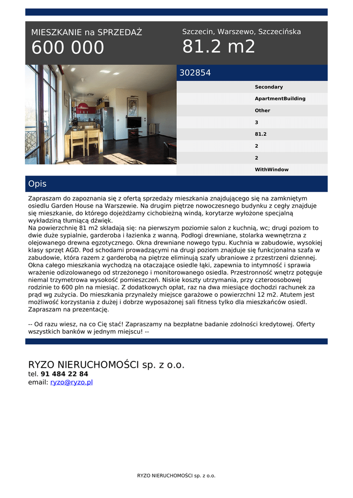 600 000 81.2 m2 - RYZO Nieruchomości Szczecin