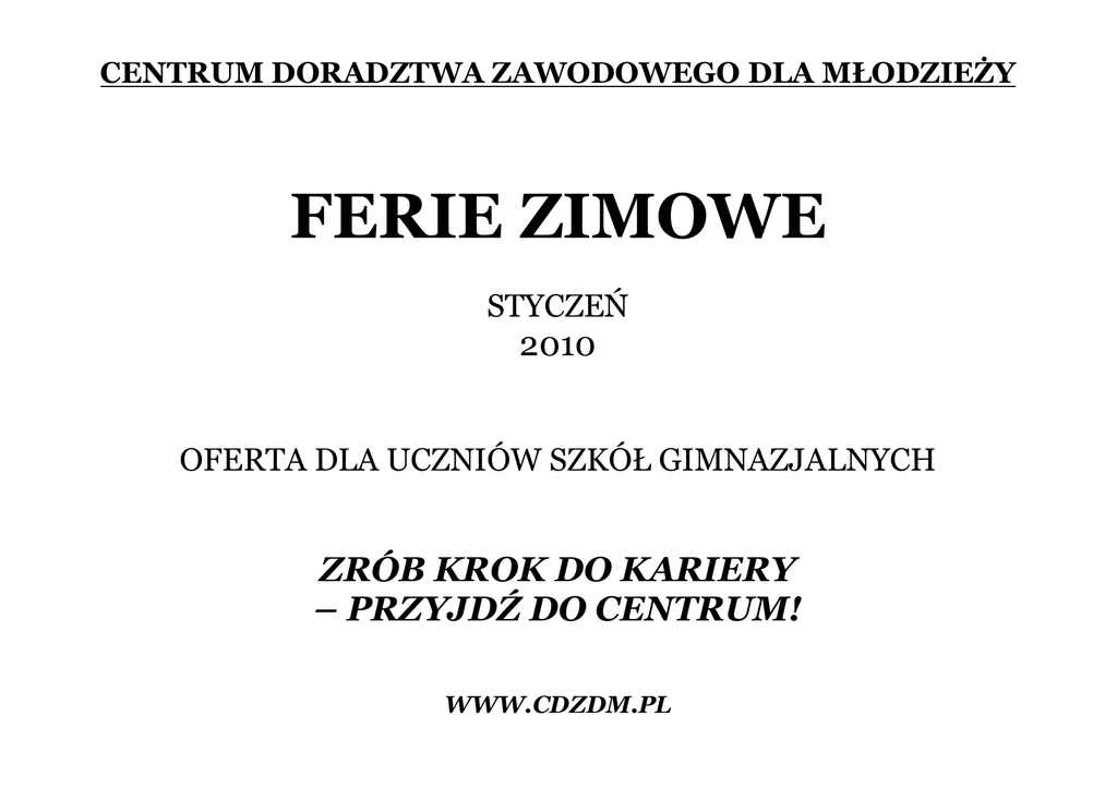 centrum doradztwa zawodowego dla młodzieży ferie zimowe