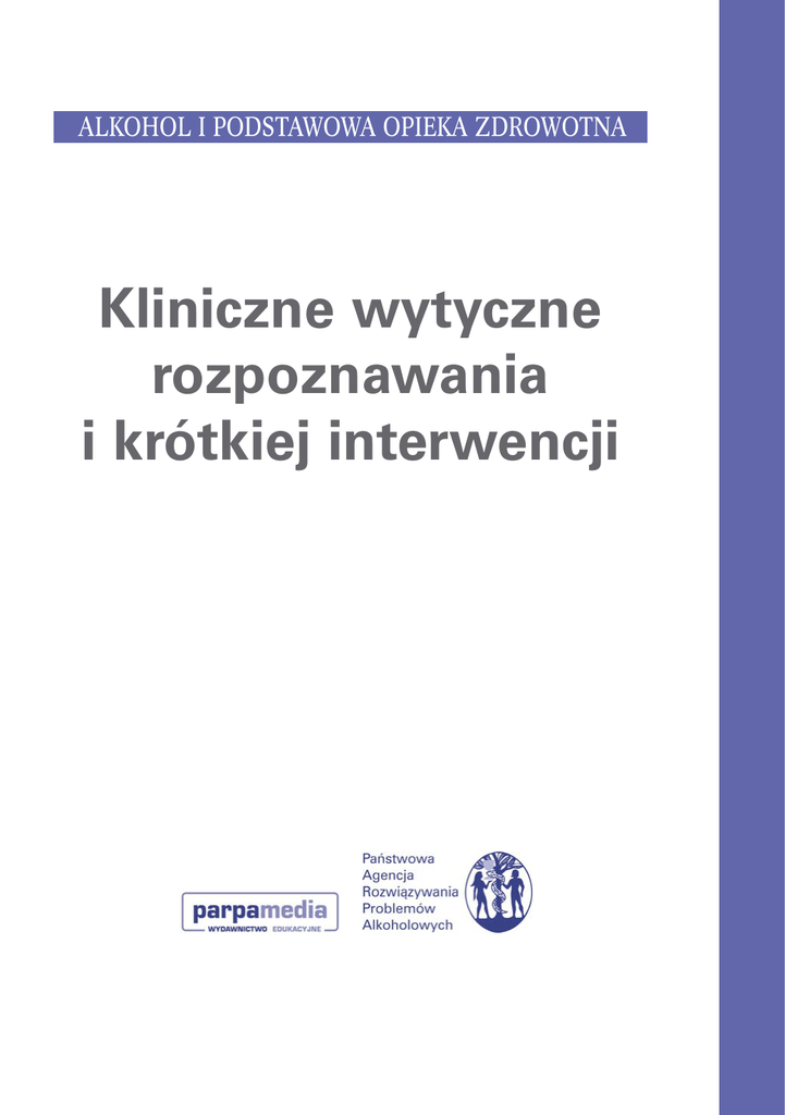 ALKOHOL I PODSTAWOWA OPIEKA ZDROWOTNA Kliniczne wytyczne rozpoznawania i krótkiej interwencji Tłumaczenie: Krzysztof Pacholik Redakcja naukowa: Artur Mierzecki, Maciej Godycki-Ćwirko Opracowanie: Jadwiga Fudała, Marek Fudała Projekt typograficzny: Karol Łotocki Skład i łamanie: Joanna Goriaczko Pro-Forma Sp. z o.o. Copyright © 2005 Anderson, P., Gual, A., Colom, J. Department of Health of the Government of Catalonia, Barcelona Copyright polskie tłumaczenie © Wydawnictwo Edukacyjne PARPAMEDIA, Warszawa 2007 ISBN 978-83-89566-65-2 Druk i oprawa: Opolgraf SA Książki Wydawnictwa można zamawiać listownie lub faksem: Dział Dystrybucji Wydawnictwa Edukacyjnego PARPAMEDIA ul. Szczotkarska 48a 01-382 Warszawa tel./fax: (22) 666 09 79 lub mailem: [email protected] www.wydawnictwo.parpamedia.pl SPIS TREÂCI Streszczenie . . . . . . . . . . . . . . . . . . . . . . . . . . . . . . . . . . . . . . . . . . . . . . . . . . . . . . . . . . . 5 1. Wstęp . . . . . . . . . . . . . . . . . . . . . . . . . . . . . . . . . . . . . . . . . . . . . . . . . . . . . . . . . . . . 13 2. Metody przygotowywania wytycznych . . . . . . . . . . . . . . . . . . . . . . . . . . . . . . . . . . . . 16 3. Opisywanie spożycia alkoholu i szkód związanych z alkoholem . . . . . . . . . . . . . . . . . . 19 4. Alkohol a zdrowie . . . . . . . . . . . . . . . . . . . . . . . . . . . . . . . . . . . . . . . . . . . . . . . . . . . . 25 5. Rozpoznawanie ryzykownego i szkodliwego spożywania alkoholu . . . . . . . . . . . . . . . . 72 6. Skuteczność krótkich interwencji . . . . . . . . . . . . . . . . . . . . . . . . . . . . . . . . . . . . . . . . 96 7. Koszty i skuteczność odniesiona do kosztów krótkich interwencji . . . . . . . . . . . . . . . 110 8. Wdrażanie programów rozpoznawania i krótkich interwencji . . . . . . . . . . . . . . . . . . . 116 9. Ocenianie szkód powodowanych przez alkohol i uzależnienie od alkoholu . . . . . . . . . 131 Dodatek . . . . . . . . . . . . . . . . . . . . . . . . . . . . . . . . . . . . . . . . . . . . . . . . . . . . . . . . . . . . 155 Podziękowania . . . . . . . . . . . . . . . . . . . . . . . . . . . . . . . . . . . . . . . . . . . . . . . . . . . . . . . . 165 Kontakty. . . . . . . . . . . . . . . . . . . . . . . . . . . . . . . . . . . . . . . . . . . . . . . . . . . . . . . . . . . . . 167 3 Niniejszy dokument przygotowany został przez Petera Andersona, Antoniego Guala i Joana Coloma na rzecz sieci Europejskiego Projektu w Podstawowej Opiece Zdrowotnej dotyczącego Alkoholu (Primary Health Care European Project on Alcohol) PHEPA i jest wynikiem projektu PHEPA. Projekt PHEPA współfinansowany jest przez Komisję Europejską oraz Departament Zdrowia Rządu Katalonii (Hiszpania). W projekcie uczestniczą przedstawiciele 17 krajów europejskich. Odpowiedzialność za treść tego dokumentu spoczywa na autorach, a treść nie reprezentuje poglądów Komisji Europejskiej. Komisja Europejska nie odpowiada również za jakikolwiek użytek czyniony z informacji w nim zawartych. Więcej informacji, a także elektroniczną wersję dokumentu, można pobrać ze strony: http://www.phepa.net Dokument ten należy cytować jako: Anderson, P., Gual, A., Colom, J. (2005). Alcohol and Primary Health Care: Clinical Guidelines on Identification and Brief Interventions. Department of Health of the Government of Catalonia: Barcelona. Projekt okładki: Xavier Cañadell Rozpoznawanie problemów alkoholowych i krótka interwencja STRESZCZENIE Wstęp Unia Europejska jest obszarem, w którym odsetek pijących, a także poziom spożycia alkoholu w populacji jest najwyższy na świecie. Alkohol jest tu na trzecim miejscu wśród czynników ryzyka utraty zdrowia oraz przedwczesnego zgonu, zaraz po paleniu papierosów i nadciśnieniu tętniczym, plasując się nawet przed takimi czynnikami jak: wysoki poziom cholesterolu i nadwaga. Poza tym, że jest substancją uzależniającą i może być przyczyną około 60-ciu różnego rodzaju schorzeń i urazów, alkohol odpowiada za szeroko rozpowszechnione szkody społeczne, psychiczne oraz emocjonalne, w tym przestępczość pospolitą i przemoc w rodzinie, przynosząc w ten sposób ogromne koszty całemu społeczeństwu. Alkohol nie tylko przynosi szkodę pijącemu, ale też wszystkim w środowisku pijącego, włączając w to nienarodzone dziecko, dzieci, członków rodziny, a także ofiary przestępstw, przemocy oraz wypadków drogowych powodowanych pod wpływem alkoholu. Na świadczeniodawcach podstawowej opieki zdrowotnej spoczywa odpowiedzialność za rozpoznawanie problemów alkoholowych i interweniowanie u pacjentów, których picie jest ryzykowne lub szkodliwe dla ich zdrowia. Rozpoznawanie i krótka interwencja dotycząca spożywania alkoholu prowadzona wobec pacjentów podstawowej opieki zdrowotnej stwarza sposobność edukowania pacjentów co do zagrożeń, jakie stwarza picie w sposób ryzykowny lub szkodliwy. Informacja o ilości i częstości spożywania alkoholu może istotnie uzupełniać rozpoznanie aktual- nego stanu pacjenta i skłaniać klinicystów do podjęcia interwencji u pacjentów, u których spożywanie alkoholu może wywoływać niepożądane interakcje z przyjmowanymi lekami i stosowanymi metodami leczenia. Najistotniejszy dla programów przesiewowych i krótkiej interwencji jest fakt, że osoby – które nie są uzależnione od alkoholu – mogą łatwiej niż osoby uzależnione (przy odpowiednim wsparciu i wysiłku) zmniejszyć lub zaprzestać całkowicie spożywania alkoholu. Pracownicy podstawowej opieki zdrowotnej często stwierdzają jednak, że rozpoznawanie i doradzanie pacjentom w sprawach spożywania alkoholu sprawia im dużą trudność. Pośród najczęściej wymienianych przyczyn tego stanu rzeczy znalazły się: brak czasu, niedostateczne przygotowanie, obawa przed oporem pacjenta, postrzegana nieprzystawalność krótkiej interwencji wobec problemów alkoholowych do profilu działania podstawowej opi
