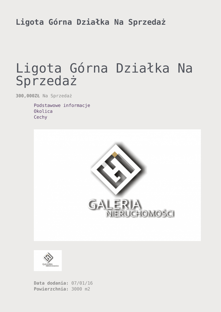 Ligota Górna Działka Na Sprzedaż