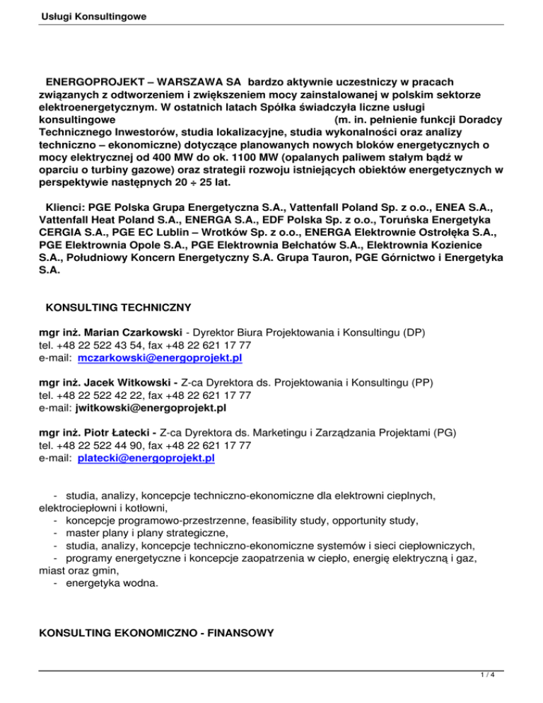 Usługi Konsultingowe - Energoprojekt Warszawa SA