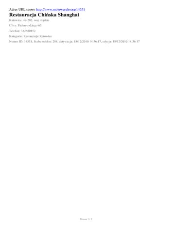 Restauracja Chinska Shanghai, Katowice