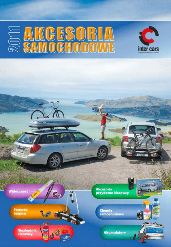 1 2 Akcesoria przydatne kierowcy Nr działu Dział IV. Diody led Lampy ksenonowe Światła do jazdy dziennej Wycieraczki bezszkieletowe Wycieraczki hybrydowe Wycieraczki szkieletowe Wycieraczki tylne Żarówki 12v Żarówki 24v Żarówki zestawy 12v Żarówki zestawy 24v Akcesoria do przezwozu bagażu Akcesoria do przezwozu rowerów Bagażniki bazowe Bagażniki na relingi Bagażniki rowerowe Boxy Haki - akcesoria Haki holownicze Przewóz gabarytów Przewóz nart / snowboard Torby, pokrowce Apteczki Bezpieczniki Gaśnice Kable rozruchowe Kamizelki odblaskowe Linki holownicze Opaski Rękawice Trójkąty odblaskowe Akcesoria do czujników parkowania Akcesoria do przezwozu bagażu Akcesoria elektryczne Alkomaty Chlapacze Ciśnieniomierz Czujniki parkowania Dywaniki gumowe Dywaniki welurowe Gąbki, ściereczki Kanistry Klucze Kołpaki Latarki Lejki Lodówki samochodowe Łańcuchy na koła Łopaty Maty bagażnika Odmrażanie szyb Opaski Osłony przeciwsłoneczne Podnośniki Pokrowce na siedzenia Pokrowce ochronne Pompki Ramki pod tablice rejestracyjne Strony 5 – 24 25 – 36 37 – 40 Dział V. Niezbędnik kierowcy Produkty 41 – 58 Dział VI. Dział I. Przewóz bagażu Dział IV. Widoczność Dział II. Dział Dział III. Nr działu Spis treści 3 Dział Produkty Skrobaczki Szczotki Ściągaczki do wody Akcesoria Torby, pokrowce przydatne kierowcy Wyświetlacze prędności Zbiorniki Zestaw podróżny Chusteczki Czyszczenie chromu Czyszczenie felg Czyszczenie i konserwacja elektryki Czyszczenie i konserwacja lakieru Czyszczenie lcd Czyszczenie opon Czyszczenie plastiku Czyszczenie przepustnic Czyszczenie silnika Czyszczenie skóry Czyszczenie szyb Czyszczenie tapicerki Czyszczenie wnętrza Dezynfekcja klimatyzacji Dodatki do oleju Dodatki do paliwa Dodatki do układu chłodzenia Impregnacja dachu w kabrioletach Kleje Koncentraty do chłodnic Koncentraty do spryskiwaczy Chemia Konserwacja uszczelek samochodowa Naprawa opon Neutralizacja zapachów Odmrażanie szyb Odmrażanie zamków Pasty do mycia rąk Płyny do chłodnic Płyny do spryskiwaczy Preparaty do pasków klinowych Samostart Silikony Smary Szampony Taśma klejąca Tester płynu Usuwanie owadów Wycieraczka w płynie Zabezpieczenia atykorozyjne I penetrujące Zabezpieczenia atykorozyjne Podwozia Zabezpieczenia gwintów Zapachy Zmywacze Strony 41 – 58 59 – 88 Adapter akumulatora Akumulatory Akumulatory Klemy Ładowarki akumulatorowe 89 – 97 KATALOG AKCESORIA SAMOCHODOWE 2011/2012 Szanowni Państwo, Z przyjemnością przedstawiamy Państwu drugie wydanie katalogu „Akcesoria Samochodowe” Inter Cars S.A. Katalog podzielony jest na 6 działów tematycznych: Widoczność, Przewóz bagażu, Niezbędnik kierowcy, Przydatne akcesoria, Chemia samochodowa, Akumulatory. Poniżej znajdziecie Państwo bardzo praktyczny, alfabetyczny skorowidz produktów, pomocny w szybkim wyszukiwaniu potrzebnych artykułów. W porównaniu do poprzedniego katalogu autorzy starali się zamieścić jak najwięcej informacji, opisów technicznych i zdjęć pomocnych zarówno dla handlowca, jak i dla klienta. Dodatkowo do większości pozycji zamieszczone zostały kolorowe piktogramy ułatwiające dopasowanie produktów do konkretnych grup towarowych. Wersja elektroniczna katalogu dostępna jest na stronie www.intercars.com.pl w zakładce Oferta handlowa / Specjalizacje / Akcesoria. Mamy nadzieje, że katalog będzie pomocnym narzędziem dla naszych klientów. Alfabetyczny skorowidz produktów Litera A B C D G H I K L Produkty Adapter akumulatora Akcesoria do czujników parkowania Akcesoria do przewozu bagażu Akcesoria do przewozu rowerów Akcesoria elektryczne Akumulatory Alkomaty Apteczki Bagażniki bazowe Bagażniki na relingi Bagażniki rowerowe Bezpieczniki Boxy Chlapacze Chusteczki Ciśnieniomierz Czujniki parkowania Czyszczenie chromu Czyszczenie felg Czyszczenie i konserwacja elektryki Czyszczenie i konserwacja lakieru Czyszczenie LCD Czyszczenie opon Czyszczenie plastiku Czyszczenie przepustnic Czyszczenie silnika Czyszczenie skóry Czyszczenie szyb Czyszczenie tapicerki Czyszczenie wnętrza Dezynfekcja klimatyzacji Diody LED Dodatki do oleju Dodatki do paliwa Dodatki do układu chłodzenia Dywaniki gumowe Dywaniki welurowe Gaśnice Gąbki, ściereczki Haki - akcesoria Haki holownicze Impregnacja dachu w kabrioletach Kable rozruchowe Kamizelki odblaskowe Kanistry Kleje Klemy Klucze Kołpaki Koncentraty do chłodnic Koncentraty do spryskiwaczy Konserwacja uszczelek Lampy ksenonowe Latarki Lejki Działy VI Strony 97 IV 55 II, IV II IV VI IV III II II II III II IV V IV IV V V V V V V V V V V V V V V I V V V IV IV III IV II II V III III IV V VI IV IV V V V I IV IV 31, 32, 46 31, 32 50, 51 90 - 96 49 38 28, 29 27 28, 29 40 26, 27 46 69, 75 51 55 70, 83, 87 68, 69, 74, 76, 87 80, 81, 83 69, 70, 71, 76, 79, 86, 87 70 69, 74, 80,87 68, 69, 70, 71, 73, 74, 86 83, 84 70, 74, 79, 81, 83, 87 71, 76 68, 70, 76, 80, 87, 88 71, 73, 74, 79, 86, 88 76 68 8 72, 79, 81, 82, 83, 84, 88 72, 73, 79, 81, 82, 84, 88 67, 79, 81, 84, 88 44, 45 45 39 47, 57 36 34, 35 83 39 38 56 65, 67, 75 97 51 52 62, 63 60, 61 70 7, 9, 10, 11, 13 49, 50 56 Litera L Ł M N O P R S Ś T U W Z Ż Produkty Linki holownicze Lodówki samochodowe Ładowarki akumulatorowe Łańcuchy na koła Łopaty Maty bagażnika Naprawa opon Neutralizacja zapachów Odmrażanie szyb Odmrażanie zamków Opaski i obejmy Osłony przeciwsłoneczne Pasty do mycia rąk Płyny do chłodnic Płyny do spryskiwaczy Podnośniki Pokrowce na siedzenia Pokrowce ochronne Pompki Preparaty do pasków klinowych Przewóz gabarytów Przewóz nart / snowboard Ramki pod tablice rejestracyjne Rękawice Samostart Silikony Skrobaczki Smary Szampony Szczotki Ściągaczki do wody Światła do jazdy dziennej Taśma klejąca Tester płynu Torby, pokrowce Trójkąty odblaskowe Usuwanie owadów Wycieraczka w płynie Wycieraczki bezszkieletowe Wycieraczki hybrydowe Wycieraczki szkieletowe Wycieraczki tylne Wyświetlacze prędności Zabezpiecz