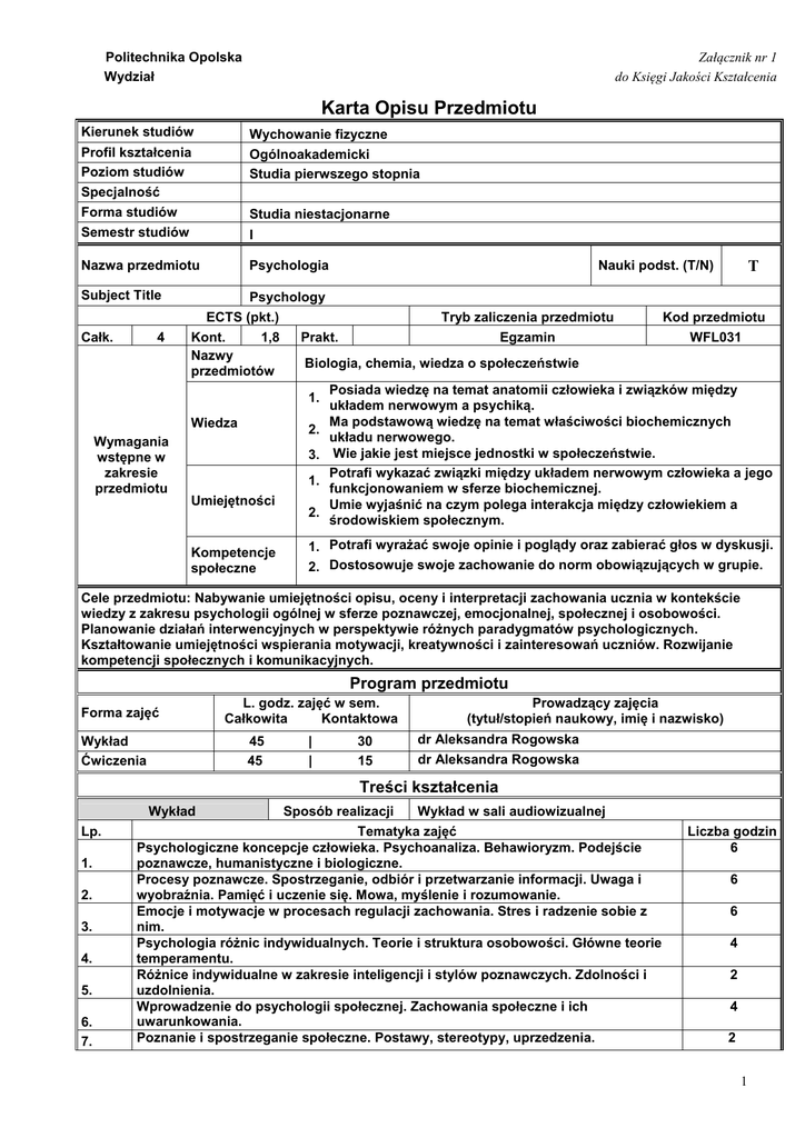 Psychologia - Politechnika Opolska