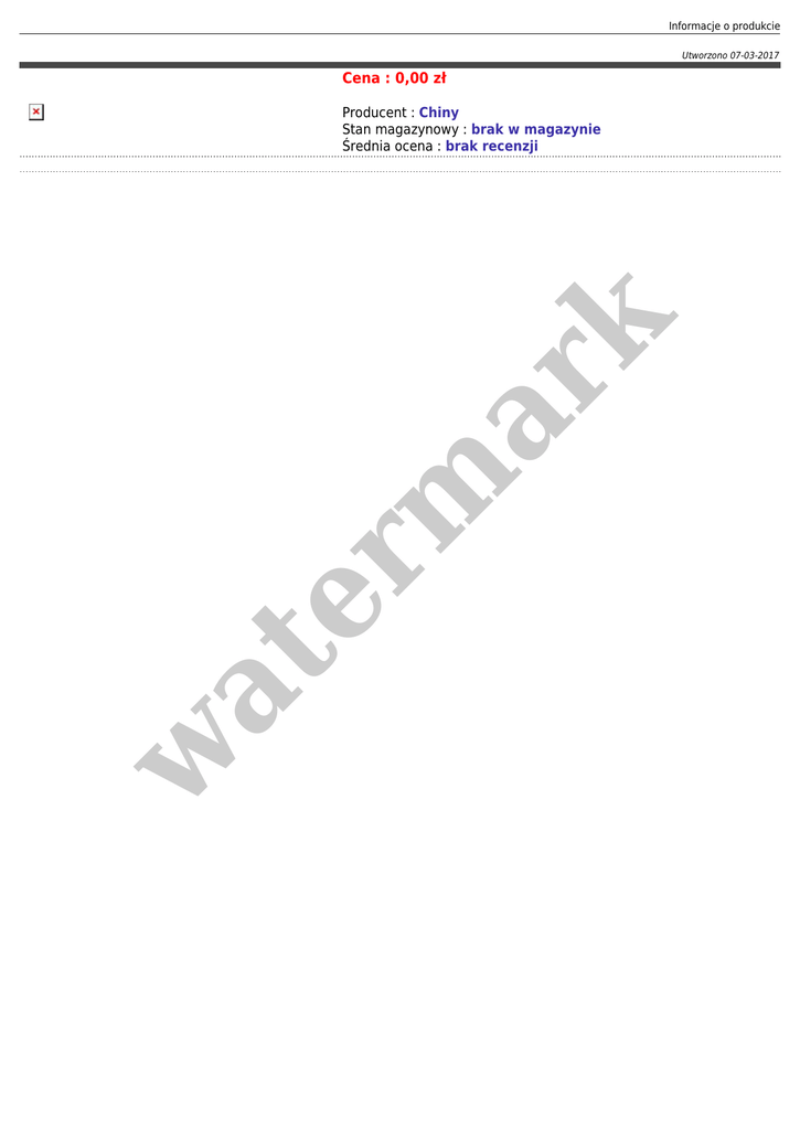 Informacje o produkcie Utworzono 07-03-2017 Cena : 0,00 zł w at er m ar k Producent : Chiny Stan magazynowy : brak w magazynie Średnia ocena : brak recenzji
