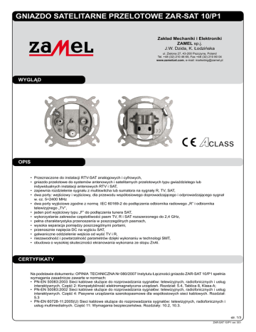 Karta konstrukcyjna ZAR-SAT 10/P1
