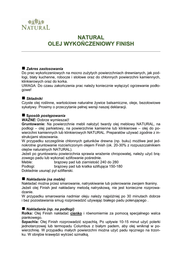 NATURAL OLEJ WYKOŃCZENIOWY FINISH