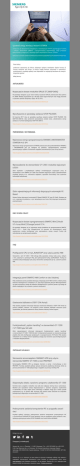 Sprawdź swoją wiedzę z testami SITRAIN Zachęcamy do skorzystania z bezpłatnych, interaktywnych testów sprawdzających wiedzę z zakresu sterowników SIMATIC i oprogramowania inżynierskiego. Testy pozwalają zweryfikować umiejętności i ułatwiają wybór odpowiednich szkoleń SITRAIN. https://sitrain.automation.siemens.com/DE/sitrain/mcms/sitrain2/content/DE(en)/Training/Pages/OnlineTests.aspx Dzień dobry, serdecznie zapraszamy do lektury kolejnego wydania newslettera Digital Factory & Process Industries and Drives, w którym znajdą Państwo informacje o nowościach produktowych, przykłady aplikacji oraz odpowiedzi na najczęściej kierowane do naszych ekspertów pytania. Miłej lektury! AKTUALNOŚCI Rozpoczęcie dostaw modułów SIPLUS ET 200SP DI/DQ W sprzedaży dostępne są już nowe moduły rozszerzeń SIPLUS przeznaczone dla systemu ET 200SP. Moduły wyposażone są w 8 wejść lub 8 wyjść binarnych oraz mogą pracować w szerokim zakresie temperatur rzędu -40° do 70°C. https://support.industry.siemens.com/cs/pl/en/view/109740120 Wycofywanie ze sprzedaży zasilacza SITOP PSU300S Od stycznia 2017 roku ze sprzedaży wycofany zostanie zasilacz SITOP PSU300S 10A (6EP1434-2BA10). Jako zamiennik wprowadzona została nowa, udoskonalona wersja zasilacza o numerze katalogowym 6EP1434-2BA10. https://support.industry.siemens.com/cs/pl/en/view/109739162 PRZEWODNIKI / DO POBRANIA Najnowsza wersja oprogramowania SINAMICS MICROMASTER STARTER V4.5 SP1 Najnowsza wersja oprogramowania STARTER przeznaczona dla przekształtników SINAMICS i MICROMASTER jest już dostępna do pobrania. Oprogramowanie umożliwia parametryzację i szybkie uruchamianie napędów produkowanych przez firmę Siemens. https://support.industry.siemens.com/cs/pl/en/view/26233208 Wprowadzenie do sterowników S7-1200 i modułów logicznych LOGO! Zbiór artykułów i przykładowych aplikacji umożliwiających rozpoczęcie pracy ze sterownikami z serii SIMATIC S7-1200 oraz modułami logicznymi LOGO!. Zaprezentowane przykłady dotyczą m.in. sterowania napędami, sposobów komunikacji oraz systemów automatyki budynkowej. https://support.industry.siemens.com/cs/pl/en/view/35923253 Zbiór najważniejszych informacji dotyczących automatyki PCBased Zestaw linków dotyczących automatyki PC-Based (SIMATIC IPC oraz PG Field). Dostępne są m.in. materiały do pobrania, w tym aktualizacje oraz liczne FAQ dotyczące komputerów przemysłowych. https://support.industry.siemens.com/cs/pl/en/view/75842768 HMI / SCADA / WinCC Rozpoczęcie dostaw oprogramowania SIMATIC WinCC/Audit V7.4 oraz WinCC/ChangeControl V7.4. W sprzedaży dostępne są już najnowsze wersje dodatków do oprogramowania SIMATIC WinCC V7.4 – Audit oraz ChangeControl. W stosunku do wcześniejszych wersji usprawniona została konfiguracja oraz wprowadzono szereg nowych funkcji jak redundancja czy wersjonowanie projektu. https://support.industry.siemens.com/cs/pl/en/view/109739599 FAQ Przełączanie CPU w tryb „RUN/STOP” przy użyciu panelu HMI Sterowniki z serii S7-1200 / 1500 oferują kilka sposobów zmiany trybu pracy. Jednym z nich, opisanym w poniższym FAQ, jest wykorzystanie funkcji „GetPLCMode”. Funkcja ta umożliwia odczyt bieżącego trybu pracy sterownika i przełączanie go np. z poziomu panelu HMI. https://support.industry.siemens.com/cs/pl/en/view/109481628 Integracja paneli SIMATIC HMI Comfort w sieci lokalnej FAQ przedstawia prosty przykład obrazujący integrację paneli HMI Comfort z lokalną siecią Ethernet. Rozwiązanie to umożliwia m.in. zapis kopii zapasowej danych HMI bezpośrednio na dysku komputera, dostęp do folderów udostępnionych z poziomu panelu czy dostęp do plików znajdujących się w panelu z poziomu komputera. https://support.industry.siemens.com/cs/pl/en/view/13336639 Otwieranie bibliotek w STEP7 (TIA Portal) FAQ zawiera przydatne informacje dotyczące otwierania bibliotek w STEP7 (TIA Portal) za pomocą zakładki „Libraries”. Do programu można dodawać biblioteki stworzone przez użytkownika, jak również pobrane ze strony Siemens Industry Online Support. https://support.industry.siemens.com/cs/pl/en/view/37364723 Funkcjonalność „option handling” w sterownikach S7-1200 i S7-1500 typu fail-safe Zbiór najważniejszych informacji dotyczących funkcjonalności „option handling” w sterownikach S7-1200 / 1500 fail-safe. Funkcjonalność pozwala na stworzenie jednego projektu dla wielu konfiguracji sprzętowych w oprogramowaniu TIA Portal. FAQ zawiera wskazówki na co należy zwrócić największą uwagę przy tworzeniu opcji konfiguracyjnych z modułami bezpieczeństwa. https://support.industry.siemens.com/cs/pl/en/view/109481852 PRZYKŁADY APLIKACJI Sterowanie serwonapędem SINAMICS V90 przy użyciu sterownika SIMATIC S7-1500 w sieci PROFINET Serwonapędy SINAMICS V90 są dostępne również w wersji z komunikacją w sieci PROFINET. Poniższy przykład aplikacji opisuje sterowanie prędkością obrotową silnika za pomocą sterownika S7-1500 połączonego z napędem za pomocą interfejsu PN. https://support.industry.siemens.com/cs/pl/en/view/109739216 Diagnostyka układu z poziomu programu użytkownika S7-1200 Kontrola stanu urządzeń, modułów oraz całej sieci odgrywa istotną rolę w automatyce. Możliwe jest wywołanie funkcji diagnostycznych z poziomu programu użytkownika w sterowniku S7-1200, dzięki czemu informacje o błędach mogą być w łatwy sposób przetwarzane np. na panelu HMI. Poniższe FAQ zawiera także odnośniki do artykułów poświęconych diagnostyce w sterownikach S7-1500. https://support.industry.siemens.com/cs/pl/en/view/109483251 Podtrzymanie zasilania komputerów IPC w przypadku awarii sieci Przykład aplikacji opisujący podtrzymanie zasilania komputerów przemysłowych IPC z uruchomionym Software PLC przez określony czas po wystąpieniu awarii zasilania z sieci. Aplikacja wykorzystuje zasilacz SITOP PSU8600 oraz moduł bufora BUF8600. https://support.industry.si