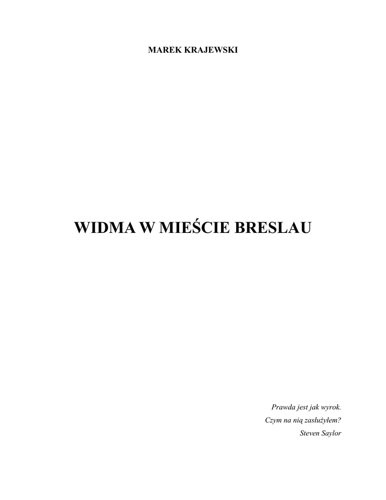 MAREK KRAJEWSKI WIDMA W MIEŚCIE BRESLAU Prawda jest jak wyrok. Czym na nią zasłużyłem? Steven Saylor Wrocław, środa 2 października 1919 roku, kwadrans na dziewiątą rano Komisarz kryminalny Heinrich Mühlhaus wchodził powoli po schodach na drugie piętro budynku Prezydium Policji przy Schuhbriicke 49*[Indeks nazw topograficznych zamieszczono na s. 203]. Kiedy stawiał stopę na kolejnym schodku, napierał na niego całym ciężarem swego ciała, by sprawdzić, czy osiemnastowieczny piaskowiec schodów nie pęknie pod obcasem jego błyszczącego trzewika. Chętnie rozkruszyłby stary kamień, naśmiecił pyłem dokoła, a potem zszedł na dół i zwrócił uwagę woźnemu na nieporządek. Opóźniłby w ten sposób wejście do swojego gabinetu: nie ujrzałby zbolałej miny sekretarza von Gallasena, nie zobaczyłby zapełnionego ważnymi terminami kalendarza ściennego z widokiem niedawno wzniesionego gmachu Technische Hochschule ani oprawionego zdjęcia swojego syna Jakoba Mühlhausa z uroczystości konfirmacyjnej, ale nade wszystko nie doświadczyłby kłopotliwej i niemiłej mu obecności medyka sekcyjnego, doktora Siegfrieda Lasariusa, którego zaanonsował mu przed chwilą policyjny goniec. To właśnie ta wiadomość zepsuła komisarzowi humor. Nie lubił Lasariusa, który uważał zmarłych za najlepszych partnerów do rozmowy. Ci też go cenili, choć nie śmiali się z jego dowcipów, leżąc w betonowych rynnach Instytutu Lekarsko - Sądowego i pławiąc się w lodowatym strumieniu wody z podrygującego gumowego szlaucha. Każda wizyta Lasariusa zwiastowała w najlepszym razie trudne pytania, w najgorszym - poważne kłopoty. Tylko ciekawy problem poznawczy lub jakieś niebezpieczeństwo sprawiało, że Charon opuszczał swe dzierżawy. Komisarz chciał wierzyć w tę pierwszą przyczynę. Rozejrzał się dokoła. Nic nie dawało mu pretekstu do opóźnienia spotkania z małomównym medykiem. Jeszcze raz przycisnął stopień nogą. Lekko zatrzeszczała polakierowana skóra butów, odbijająca metalowe liście wijące się wokół prętów poręczy i piramidalne wzniesienie schodów. Z dziedzińca doszedł jakiś stukot i głośne przekleństwa. Mühlhaus spojrzał ponad zaniedbaną paprotką, której fatalny stan zauważała każda kobieta wchodząca do tego męskiego świata. On sam, choć nie był kobietą, zarejestrował skręcone gałązki proszące o wodę i z rozgniewaną miną odwrócił się i zbiegł po schodach w stronę dyżurki. Nie doszedł jednak do niej. - Panie komisarzu! - usłyszał z góry tubalny głos Lasariusa. Przystanął i ujrzał ciemny wachlarz kapelusza i wilgotne ornamenty rzadkich loków na czaszce. Lasarius schodził majestatycznie. - Nie mogłem się pana doczekać. - Jest dopiero za pięć dziewiąta. - Mühlhaus wyjął srebrną kopertę z kieszeni kamizelki. - Nie może pan poczekać, doktorze, kilku sekund? Tak pilna jest pańska sprawa, że będziemy ją omawiać na schodach? - Niczego nie będziemy omawiać - Lasarius otworzył skórzaną aktówkę i podał Mühlhausowi dwie kartki z nagłówkami „Raport z sekcji zwłok”, po czym zapatrzył się na dziedziniec, gdzie woźny i furman dzwonili kankami z naftą. - Nie będziemy w ogóle nic mówić. Ani słowa. Nikomu. - A zwłaszcza Mockowi - uzupełnił Mühlhaus po szybkim przeczytaniu raportu. Obserwował wąsatego furmana, który podawał woźnemu kanki i był tak nadęty, że mało brakowało, a po dziedzińcu zaczęłyby strzelać guziki z jego kamizelki. - Doktorze Lasarius, czy pańscy zimni pacjenci nie mają nazwisk? Dlaczego ci dwoje są anonimowi? Ja wiem, że pan nie zna tych nazwisk. W takim razie trzeba je nadać. Nawet bydlęta przebywające z ludźmi mają swoje imiona. - U mnie, panie komisarzu Mühlhaus - mruknął medyk - nie ma różnicy pomiędzy bydlętami a ludźmi, chyba że chodzi o rozmiary serca lub wątroby. A w pana profesji jak jest? - Nazwiemy ich... - policjant pominął milczeniem pytanie i spojrzał na furgon z naftą, na którym widniał napis: „Artykuły oświetleniowe Salomon Beyer” - ...nazwiemy ich Alfred Salomon i Catarina Beyer. - Ja ciebie chrzczę w imię Ojca i Syna, i Ducha Świętego - powiedział Lasarius, oparł aktówkę o poręcz, wpisał nazwiska w odpowiednie rubryki i uczynił nad kartkami znak krzyża. - Nikomu... zwłaszcza Mockowi - powtórzył zamyślony Mühlhaus i podał medykowi rękę. - W moim zawodzie też nie ma różnicy pomiędzy ludźmi i zwierzętami. Ale bez nazwisk trudno prowadzi się kartotekę. Wrocław, środa 2 października 1919 roku, godzina dziewiąta rano Asystent kryminalny Eberhard Mock wyszedł chwiejnym krokiem z trafiki Afferta znajdującej się w ciemnej bramie na północnej pierzei Rynku. Październikowe słońce poraziło zamglone tęczówki jego oczu, na które nasuwały się co chwila opuchnięte powieki. Słaniając się na nogach, oparł się o bramę wejściową do Ring - Theater i nałożył na nos okulary o jaskrawożółtych szkłach. Wszystko dokoła oblewała jasna poświata potęgowana dziełem jenajskich optyków, jakim były silnie rozjaśniające binokle. Pomiędzy szkła a pocięte czerwonymi żyłkami białka oczu dostał się gryzący dym papierosowy. Mock prawie stracił oddech. Wypuścił dym i odruchowo przysłonił palcami oczy. Syknął z bólu - powieki były kłębowiskiem neuronowych zakończeń, a pod wilgotną skórą przesuwały się twarde grudki. Trzymając się jedną ręką ściany, ruszył prawie po omacku. Skręcił w Schmiedebriicke. Pod dłonią przesuwały mu się oszklone witryny sklepu Proskauera z męską konfekcją, w oczy kłuły go blaski wysyłane przez złote zegarki rozłożone za szybą sklepu Kuhnela, ocierał się o chropowate ściany budynku zajmowanego przez „Deutsche Seefischhandels - Aktiengesellschaft”, aż w końcu przeszedł przez Nadlerstrasse i natrafił na oszklone drzwi kawiarni Heymanna. Wtoczył się do środka lokalu, któ