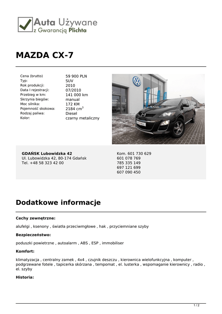 mazda cx-7 - Auta używane z gwarancją Plichta