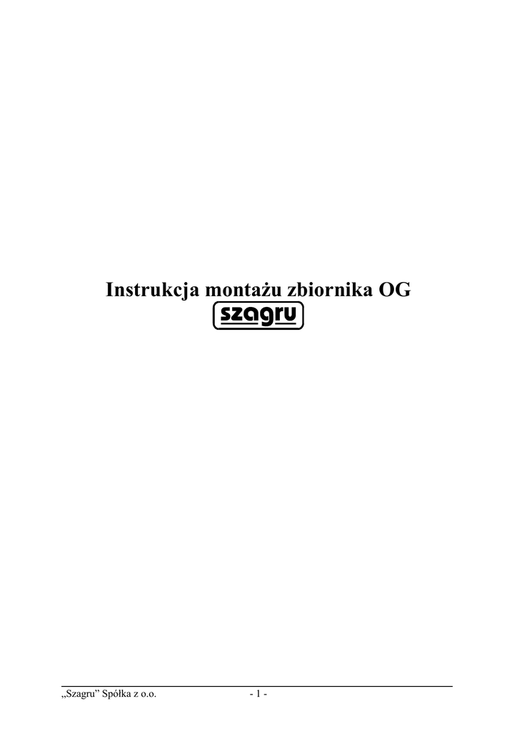 Instrukcja montażu zbiornika OG „Szagru” Spółka z o.o. -1- Spis treści Spis treści ................................................................................................................................... 2 Przeznaczenie i zakres stosowania............................................................................................ 3 Transport ................................................................................................................................... 3 Warunki posadowienia i montażu ............................................................................................ 3 Lokalizacja......................................................................................................................................... 3 Prace ziemne.............................................................................................................................. 4 Podłoże do posadowienia zbiornika................................................................................................. 4 Obsypka ............................................................................................................................................. 4 Zagęszczenie obsypki ........................................................................................................................ 5 Zasypka.............................................................................................................................................. 6 Szczególne zalecenia dla terenu podmokłego ................................................................................. 6 Obsługa i konserwacja .............................................................................................................. 7 Montaż zwieńczeń zbiornika ..................................................................................................... 7 Montaż płyty odciążającej ......................................................................................................... 8 „Szagru” Spółka z o.o. -2- Przeznaczenie i zakres stosowania Osadniki gnilne Szagru przeznaczone są do usuwania zanieczyszczeń ze ścieków bytowogospodarczych na drodze sedymentacji, flotacji oraz fermentacji osadów powstałych z zatrzymanych zawiesin. Osadniki gnilne mogą być instalowane w przydomowych oczyszczalniach ścieków i przeznaczone są dla różnych użytkowników. Stosowane są: w budownictwie jednorodzinnym, w obiektach użyteczności publicznej z zapleczem gastronomicznym (szkoły, przedszkola, internaty, zakłady pracy, hotele, motele itp.), biurach i obiektach bez zaplecza gastronomicznego jak również w obiektach czynnych okresowo (działki rekreacyjne, campingi, obiekty kolonijne itp.). Transport Osadniki gnilne można przewozić dowolnymi środkami transportu. Powinny one być ładowane obok siebie i zabezpieczone przed przesuwaniem się. Należy zwracać uwagę, aby wyroby nie stykały się z ostrymi przedmiotami i w wyniku tego nie zostały mechanicznie uszkodzone. Do załadunku i rozładunku należy używać specjalnych lin lub pasów niemetalowych. Podczas prac przeładunkowych należy zachować szczególną ostrożność. Warunki posadowienia i montażu Zalecenia do wykonania przed przystąpieniem do montażu: - sprawdzić stan zewnętrzny i wewnętrzny osadnika, szczególnie miejsca narażone na uszkodzenia w czasie transportu i magazynowania. Lokalizacja Usytuowanie zbiornika na działce jest regulowane przez Rozporządzenie Ministra Gospodarki Przestrzennej i Budownictwa w sprawie warunków technicznych, jakim powinny odpowiadać budynki i ich usytuowanie (Dz.U. Nr 10 1995r. poz. 46 § 37). „Przepływowe, szczelne osadniki podziemne, stanowiące część indywidualnego urządzenia do biologicznego oczyszczania ścieków gospodarczo-bytowych, służące do wstępnego ich oczyszczania, mogą być sytuowane w bezpośrednim sąsiedztwie budynków jednorodzinnych, pod warunkiem wyprowadzenia ich odpowietrzenia przez instalację kanalizacyjną co najmniej 0,6m powyżej górnej krawędzi okien i drzwi zewnętrznych w tych budynkach.” Elementy zagospodarowania lub zabudowy terenu Granica posesji lub droga Dom mieszkalny Studnia – ujęcie wody pitnej Wody gruntowe Rurociągi z gazem, wodą Kable elektryczne Drzewa i krzewy „Szagru” Spółka z o.o. -3- Odległość w metrach od osadnika 2m 5m 15m --1,5m 0,8m 1,5 Prace ziemne Podłoże do posadowienia zbiornika W zależności od rodzaju gruntu występującego na poziomie posadawiania, zbiornik można ustawić: • bezpośrednio na gruncie rodzimym – podłoże naturalne: grunty sypkie, suche (normalnej wilgotności), piaszczyste, żwirowo-piaszczyste, piaszczysto-gliniaste, gliniasto-piaszczyste. W takich warunkach gruntowych, zbiornik należy posadowić na dnie wykopu dając tylko warstwę wyrównawczą z gruntu rodzimego, zagęszczoną o grubości 10 do 15cm. Grunt nie powinien zawierać ziaren większych od 20mm; • lub na odpowiednio zaprojektowanym podłożu wzmocnionym w przypadku gdy: naruszono grunty rodzime, które miały stanowić podłoże naturalne, występują grunty skaliste, rumowiska, grunty spoiste, piaski pylaste, występują grunty o niskiej nośności np. muły, torfy, inne dla których dokumentacja projektowa wymaga zastosowania wzmocnień. Wzmocnienie podłoża możemy uzyskać w następujący sposób: • Dla naruszonych gruntów rodzimych i gruntów skalistych, należy wykonać ławę piaskową o grubości od 15 do 25cm odpowiednio zagęszczoną. Ławę możemy wykonać z piasku grubo, średnio lub drobnoziarnistego, mieszaniny bez frakcji pylastych o wielkości ziaren do 20mm; • Dla gruntu słabego o głębokości zalegania do 1m, należy całkowicie usunąć grunt rodzimy aż do głębokości zalegania i zastąpić ją ławą tłuczniowo-piaskową w stosunku objętościowym (1:0,3) lub ławą tłuczniowo-żwirową (1:0,6), zagęszczoną; • Dla gruntu słabego o głęb