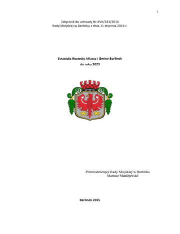 1 Załącznik do uchwały Nr XVII/243/2016 Rady Miejskiej w Barlinku z dnia 11 stycznia 2016 r. Strategia Rozwoju Miasta i Gminy Barlinek do roku 2023 Przewodniczący Rady Miejskiej w Barlinku Mariusz Maciejewski Barlinek 2015 2 Spis treści I. Skład Zespołu ...................................................................................................................... 3 II. Raport o stanie Miasta i Gminy – zawartość dokumentu ................................................... 4 III. Konsultacje społeczne ......................................................................................................... 5 IV. Analiza SWOT ...................................................................................................................... 5 V. Analiza SWOT/TOWS ........................................................................................................... 8 VI. Cele strategiczne ............................................................................................................... 11 VII. Wizja Miasta i Gminy......................................................................................................... 13 VIII. Wskaźniki mierzące osiągnięcie celów.............................................................................. 14 IX. Zarys zasad wdrażania strategii, kryteria selekcji projektów. ........................................... 16 X. Związki celów strategii ...................................................................................................... 16 I. Realizacja strategii............................................................................................................. 21 3 „Przyszłość ma wiele nazw. Dla słabych oznacza nieuchronność, dla bojaźliwych nieznane, zaś dla odważnych oznacza szansę”. Victor Hugo I. Skład Zespołu Strategia Rozwoju Miasta i Gminy Barlinek do roku 2023 została wypracowana przez Zespół ds. aktualizacji Strategii Rozwoju Barlinka oraz programów operacyjnych. Skład Zespołu: 1. Dariusz Zieliński, burmistrz, Urząd Miejski w Barlinku, 2. Krzysztof Paszek, z-ca burmistrza, Urząd Miejski w Barlinku, 3. Edyta Włodkowska, skarbnik, Urząd Miejski w Barlinku, 4. Ewa Hinc – Dziedziela, sekretarz, Urząd Miejski w Barlinku, 5. Danuta Gaździcka – Słupińska, radca prawny, Urząd Miejski w Barlinku, 6. Anna Łechtańska, Urząd Miejski w Barlinku, 7. Janusz Mickiewicz, Urząd Miejski w Barlinku, 8. Janusz Zubyk, Urząd Miejski w Barlinku, 9. Zdzisław Kik, Urząd Miejski w Barlinku , 10. Katarzyna Budzeń, Urząd Miejski w Barlinku, 11. Ewa Kalista, Urząd Miejski w Barlinku, 12. Magdalena Walaszczyk, Urząd Miejski w Barlinku , 13. Grzegorz Przybylski, Urząd Miejski w Barlinku, 14. Urszula Rudnicka, Urząd Miejski w Barlinku, 15. Agnieszka Zając, Urząd Miejski w Barlinku, 16. Eliza Chojnacka, Urząd Miejski w Barlinku, 17. Maria Mitek, radna, członek Rady Miejskiej, Uniwersytet Trzeciego Wieku w Barlinku, 18. dr Arkadiusz Malkowski, prodziekan ds. studenckich Wydział Ekonomiczny, Zachodniopomorski Uniwersytet Technologiczny w Szczecinie, były mieszkaniec Barlinka, 19. Krzysztof Andrzej Rosenkiewicz, specjalista, Urząd Miasta Poznań, były mieszkaniec Barlinka, 20. Małgorzata Cykalewicz, Stowarzyszenie na rzecz ochrony dziedzictwa „Młyn Papiernia”, 21. Agnieszka Nikoliszyn – Granatowska, Stowarzyszenie - Klub Żeglarski „SZTORM” 22. Agnieszka Nowicka – Szyszka – w-ce prezes Centrum Rozwoju Sportu, prezes spółdzielni socjalnej Promocjone.com, 23. Andrzej Siudek, Związek Kombatantów, 24. Krzysztof Wolski, Związek Kombatantów, Klub Szachowy „Lasker”, 25. Elżbieta Smoczyk, Mały Dom Kultury „Plantacja Wyobraźni”, 26. Elżbieta Chudzik, Mały Dom Kultury „Plantacja Wyobraźni”, 27. Justyna Mariańska, Lider Pojezierza, 28. Ireneusz Kostka, w-ce prezes, Lider Pojezierza, 29. ks. Marcin Miczkuła, Parafia Rzymskokatolicka pw. Niepokalanego Serca NMP, 30. Mirosław Czarnecki, Nadleśnictwo Barlinek, 31. Magdalena Zynda -Lis, Ośrodek Pomocy Społecznej w Barlinku, 4 32. Katarzyna Mielcarek, Centrum Informacji Turystycznej w Barlinku, 33. Janina Bojanowska, Przedszkole Miejskie nr 1 w Barlinku, 34. Arkadiusz Cysek, prezes zarządu, Szpital Barlinek Sp.zo.o., 35. Waldemar Wójtowicz – prezes, Organizacja Przedsiębiorców Barlinek, 36. Bartosz Bogusław, właściciel, Hotel „Barlinek”, 37. Urszula Rutkowska, dyrektor oddziału, GBS Bank, 38. Agnieszka Kuczaba-Wysocka, sołtys, Dzikowo, 39. Kazimiera Kubiak, mieszkanka Barlinka. II. Raport o stanie Miasta i Gminy – zawartość dokumentu Przed opracowaniem Strategii Rozwoju Miasta i Gminy Barlinek do roku 2023 przygotowano „Raport o stanie Miasta i Gminy - Barlinek do roku 2015”. Raport poszerzono dodatkowo o analizy porównawcze Barlinka z innymi miastami i gminami. Dokumenty zamieszczono na stronie internetowej gminy. Zakres diagnozy obejmował zagadnienia: A. Kapitału społecznego, społecznego klimatu rozwoju, w tym analizie poddano m.in. dane dotyczące liczby organizacji pozarządowych, środowisk biznesu, poziomu uczestnictwa społeczności w dialogu publicznym. B. Przywództwa w tym m.in. dane dotyczące liderów środowisk, autorytetów, koncepcji, wyrazistych postaci wśród mieszkańców, autorytetów lokalnych, urodzonych na miejscu sławnych obywateli. C. Zasobów środowiska naturalnego, w tym dane dotyczące pomników przyrody, typów roślinności, mikroklimatu, kopalin, zasobów wód podziemnych, stanu środowiska naturalnego, poziomu zanieczyszczeń powietrza. D. Zasobów pracy, w tym analizie poddano m.in. dane dotyczące demografii, migracji i ich charakteru, struktury zawodowej, struktury wiekowej, relacji kobiety – mężczyźni, wyników edukacyjnych (zdawalność egzaminów), możliwości dokształcania, dostępności i standardu mieszkań, zasobów mieszkaniowych. E. Terenu i korzyści miejsca, w tym m.in. renty położenia, terytorium Mia