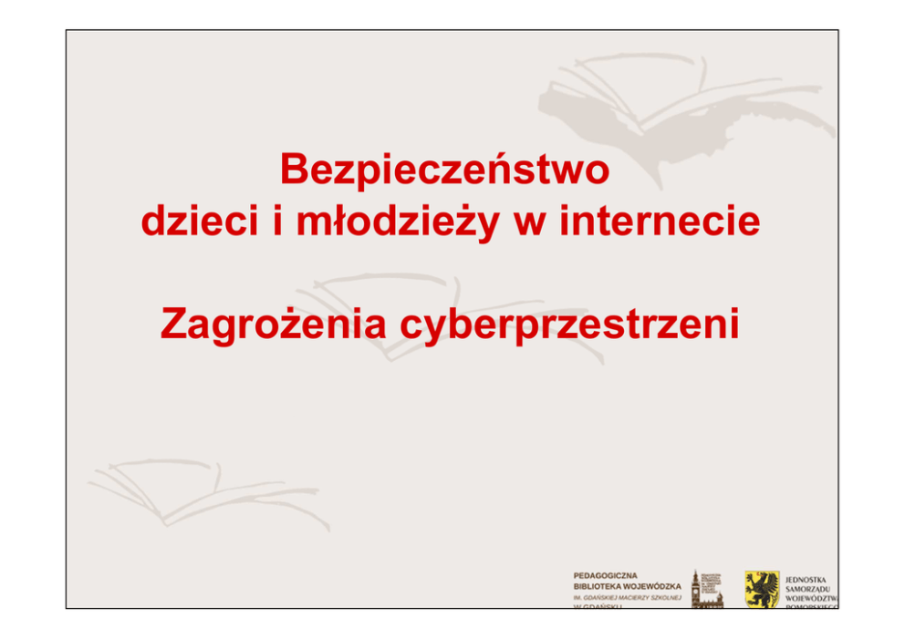 Bezpieczeństwo dzieci i młodzieży w internecie Zagrożenia cyberprzestrzeni Korzystanie z internetu w Polsce • w 2013 r. liczba użytkowników internetu w Polsce ustabilizowała się (62% mieszkańców Polski powyżej 15. roku życia) • prawie 100% Polaków w grupie wiekowej 15-24 lata korzysta z sieci • obecność w mediach społecznościowych jest jednym z najważniejszych aspektów korzystania z internetu – aż 3/4 internautów deklaruje, że ma konto na portalu społecznościowym za: World Internet Project (edycja polska) w 2013 Korzystanie z internetu w Polsce • użytkownicy internetu posiadają: – laptopy – 71% – komputery stacjonarne – 57% – 31% – smartfon, a 12% – tabletu (urządzenie to jest najpopularniejsze wśród osób w wieku 15–29 lat); • jeśli chodzi o sposoby łączenia się z internetem, to: – 67% robi to za pośrednictwem laptopa, – 55% – komputera stacjonarnego, – 28% – smartfonu, – 6% – tabletu (najpopularniejszy wśród osób w wieku 15–29 lat), – 3% – smart tv. za: World Internet Project (edycja polska) w 2013 Korzystanie z internetu w Polsce • w 2012 r. 50% nastolatków używało internetu w telefonach komórkowych (3) – w 2014 r. – 54,3% (2) • w 2013 r. w Polsce dzieci i młodzież (15–19 lat) w ciągu tygodnia korzysta z internetu przez 23 godziny co w dziennym bilansie stanowi prawie 3,5 godziny (1) – w 2014 r. – 3h 40 min. (2) 1. Wg. danych World Internet Project edycja polska w 2013 r. 2. Raport „Nastolatki wobec Internetu” – RPD, NASK, Pedagogium, 2014 3. ADBEU NET BADANIE NADUŻYWANIA INTERNETU PRZEZ MŁODZIEŻ W POLSCE, 2012 Zagrożenia NIEBEZPIECZNE TREŚCI I ZACHOWANIA • sceny przemocy, pornografia, np. w grach komputerowych, filmach, portalach internetowych • wulgarny język, np. w komunikatorach, na forach dyskusyjnych, forum szkoły • grooming, sexting, Korzystanie ze stron erotycznych web-cam sexting 7–12 lat – 27% 13–15 lat – 33% • nadużywanie internetu 16–18 lat – 45 % Za: PBI – Polskie Badanie Internetu - badanie internautów 2014 Zagrożenia CYBERPRZEMOC • • • przemoc psychiczna, nękanie, ośmieszanie, umieszczanie filmów w sieci, tworzenie fałszywych stron internetowych przez rówieśników rozpowszechnianie sprawstwa cyberprzemocy waha się w przedziale od 7 do 35% najwyższy odsetek sprawców obserwuje się w grupie 13–15 lat (Calvete, 2010) • 52% internautów w wieku 12-17 lat przyznaje, że za pośrednictwem Internetu lub telefonii komórkowej miało do czynienia z przemocą werbalną – 47% badanych doświadczyła wulgarnego wyzywania – 21% badanych doświadczyła poniżania, ośmieszania i upokarzania – 16% badanych doświadczyła straszenia i szantażowania cyt. za: Ronatowicz, Cyberpodwórko - profilaktyka ryzykownych zachowań seksualnych dzieci, młodzieży i młodych dorosłych w wirtualnym świecie, 2015 Zagrożenia KRADZIEŻ INFORMACJI • wyłudzanie informacji (dane osobowe, wrażliwe informacje) • nielegalne rozpowszechnianie plików z muzyką, grami lub filmami • nieprawdziwe informacje (plagiaty, nieweryfikowanie informacji z internetu w źródłach naukowych) Zagrożenia INNE • promocja niewłaściwego systemu wartości, sekty, samobójstwa, anoreksja, używki, zakupy, • wirusy komputerowe, • uzależnienie od komputera, skutki zdrowotne nadaktywnego korzystania z komputera Bezpieczne korzystanie z internetu w ofercie PBW w Gdańsku NAUCZYCIELE Bezpieczeństwo dzieci i młodzieży w internecie. Zagrożenia cyberprzestrzeni – szkolenie Serwisy społecznościowe w edukacji – warsztaty Kulturalnie = legalnie, czyli o prawie autorskim – szkolenie Szkolenia rad pedagogicznych Dziecko bezpieczne w sieci – prezentacja podczas zebrań z rodzicami Bezpieczne korzystanie z internetu w ofercie PBW w Gdańsku UCZNIOWIE Lekcja bezpieczeństwa, czyli o prywatności online (kl. IV-VI) Bezpieczni w sieci. Korzyści i zagrożenia cyberprzestrzeni (gimnazjum i szkoły ponadpostawowe) Kulturalnie = legalnie, czyli o prawie autorskim (szkoły ponadpodstawowe) W labiryncie informacji. Warsztaty wyszukiwania w internecie (gimnazjum i szkoły ponadpostawowe) Dziękuję [email protected] [email protected] Zawiera fragmenty prezentacji „Bezpieczeństwo dzieci i młodzieży w internecie – najnowsze zagrożenia cyberprzestrzeni” / Fundacja Odkrywców Innowacji, cop. 2015, wersja 3. Modyfikacja 22.10.2015.