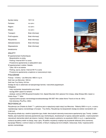 - atrakcje: centrum SPA Bruyeres/Croisette 2 km, Speed Mountain 2km (pieszo)/1km (trasą), sklep Sherpa 90m, basen w