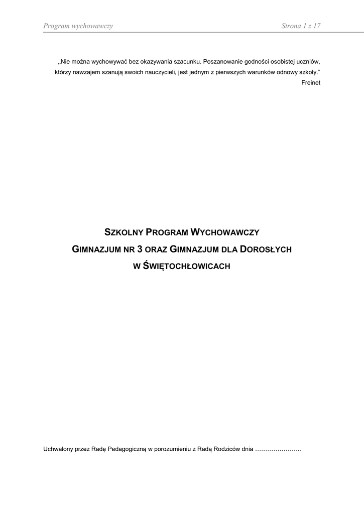 szkolny program wychowawczy gimnazjum nr 3 oraz gimnazjum dla