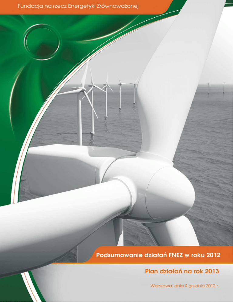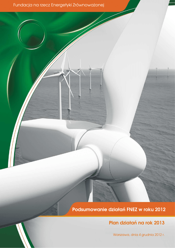 Fundacja na rzecz Energetyki Zrównoważonej Podsumowanie Podsumowanie działań FNEZ wdziałań roku 2012 Plan Zrównoważonej działań na rok 2013 Fundacji na rzecz Energetyki w roku 2012 Plan działań na rok 2013 Warszawa, dnia 4 grudnia 2012 r. Warszawa, dnia 4 grudnia 2012 r. Spis treści Podsumowanie działań Fundacji na rzecz Energetyki Zrównoważonej zrealizowanych w roku 2012 ........... 3 I. Promocja morskiej energetyki wiatrowej, jako istotnego składnika krajowego energy-mix na lata 2020-2030 ......... 4 II. Proces legislacyjny ustawy o odnawialnych źródłach energii ............................................................................... 6 III. Standaryzacja zakresu i metodyki badań środowiska morskiego oraz ocen oddziaływania na środowisko w morskiej energetyce wiatrowej ............................................................................................................................................. 8 IV. Serwisy internetowe ....................................................................................................................................... 9 V. Pozostałe działania ....................................................................................................................................... 10 Działania Fundacji na rzecz Energetyki Zrównoważonej planowane na rok 2013 ........................................ 11 I. System wsparcia dla morskich farm wiatrowych .............................................................................................. 13 II. Narodowy program rozwoju morskiej energetyki wiatrowej i przemysłu morskiego ............................................ 13 III. Krajowy program monitoringu środowiska morskiego ...................................................................................... 14 IV. Infrastruktura przyłączeniowa dla MFW z polskich obszarów morskich............................................................... 14 V. Serwisy internetowe ..................................................................................................................................... 14 Spis załączników: ................................................................................................................................................. 16 Fundacja na rzecz Energetyki Zrównoważonej w roku 2012 prowadziła trzy projekty: 1. Narodowy program rozwoju morskiej energetyki wiatrowej na polskich obszarach morskich, 2. Standaryzacja ocen oddziaływania na środowisko w energetyce, 3. System wsparcia dla energetyki odnawialnej w Polsce. W ramach realizacji projektów FNEZ podejmowała działania koncentrujące się na następujących obszarach tematycznych: 1. Promocja morskiej energetyki wiatrowej, jako istotnego składnika krajowego energy-mix na lata 20202030, 2. Proces legislacyjny ustawy o odnawialnych źródłach energii, 3. Standaryzacja zakresu i metodyki badań środowiska morskiego oraz ocen oddziaływania na środowisko w morskiej energetyce wiatrowej, 4. Prowadzenie serwisów internetowych (www.oddzialywaniawiatrakow.pl, www.morskiefarmywiatrowe.pl, www.oddzialywaniagazulupkowego.pl). I. Promocja morskiej energetyki wiatrowej, jako istotnego składnika krajowego energy-mix na lata 2020-2030 Tło: W związku z nieuwzględnieniem w Polityce Energetycznej Polski do roku 2030 pełnego potencjału morskiej energetyki wiatrowej, a także niską powszechną świadomością korzyści i szans jakie mogą płynąć dla polskiej gospodarki z tytułu rozwoju tego sektora, Fundacja na rzecz Energetyki Zrównoważonej podjęła szereg działań promocyjnych i edukacyjnych, przybliżających politykom i społeczeństwu morską energetykę wiatrową. Wykonane działania: 1. Przygotowanie ekspertyzy „Analiza bilansu energetycznego w Polsce w latach 2012 – 2030”, w celu udowodnienia, że MFW mogą odegrać ważną rolę w krajowym energy-mix do roku 2030, kwiecień 2012, załącznik nr 1. 2. Przygotowanie posiedzenia Parlamentarnego Zespołu ds. Energetyki w sprawie uwarunkowań rozwoju morskiej energetyki wiatrowej i przemysłu morskiego, z udziałem członków Zespołu oraz ekspertów branży morskiej energetyki wiatrowej, w celu promocji morskiej energetyki wśród parlamentarzystów, oraz przygotowania klimatu do rozmów o systemie wsparcia dla MFW, maj 2012. 3. Przygotowanie materiału podsumowującego posiedzenie Parlamentarnego Zespołu ds. Energetyki w sprawie uwarunkowań rozwoju morskiej energetyki wiatrowej i przemysłu morskiego, zawierającego wnioski i przebieg dyskusji, maj 2012 i rozesłanie go do przedstawicieli rządu i parlamentu, załącznik nr 2. 4. Opracowano i upubliczniono stanowiska, w sprawach istotnych dla rozwoju morskiej energetyki wiatrowej: a. stanowisko w sprawie wytycznych dotyczących transeuropejskiej infrastruktury energetycznej, wskazujące na konieczność zaangażowania się Polski w prace nad projektem systemów elektroenergetycznych na polskich obszarach morskich, które mogłyby stać się elementem transeuropejskiej sieci bałtyckiej, luty 2012, załącznik nr 3. b. stanowisko w sprawie polskiego weta dla tzw. „kroków milowych” na ścieżce redukcji emisji w UE do roku 2050, wskazujące na konieczność rewizji i aktualizacji dotychczasowej polityki 4 energetycznej oraz budowanie strategii dywersyfikacji źródeł wytwórczych, z istotnym miejscem dla MFW, marzec 2012, załącznik nr 4. c. stanowisko w sprawie dyskusji na temat kosztów energii z morskich farm wiatrowych i energetyki jądrowej, wskazujące na brak konfliktu pomiędzy programami rozwoju energetyki jądrowej i morskiej energetyki wiatrowej w perspektywie do roku 2030, sierpień 2012, załącznik nr 5. 5. 6. 7. 8. 9. Aktywny udział w wydarzeniach istotnych dla sektora energetyki oraz branży morskiej energetyki wiatrowej w celu promowania rozwiązań sprzyjających rozwojowi MFW w Polsce: a. 2012 Annual Event, Kopenhaga (EWEA), udział w najważniejszym wydarzeniu br