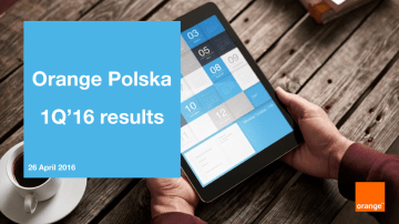 Orange Polska 1Q’16 results 26 April 2016 1 Forward looking statement This presentation contains 'forward-looking statements' including, but not limited to, statements regarding anticipated future events and financial performance with respect to our operations. Forward-looking statements can be identified by the fact that they do not relate strictly to historical or current facts. They often include words like 'believe', 'expect', 'anticipate', 'estimated', 'project', 'plan', 'pro forma', and 'intend' or future or conditional verbs such as 'will', 'would', or 'may‘. Factors that could cause actual results to differ materially from expected results include, but are not limited to, those set forth in our Registration Statement, as filed with the Polish securities and exchange commission, the competitive environment in which we operate, changes in general economic conditions and changes in the Polish, American and/or global financial and/or capital markets. Forward-looking statements represent management’s views as of the date they are made, and we assume no obligation to update any forwardlooking statements for actual events occurring after that date. You are cautioned not to place undue reliance on our forward-looking statements. Notice on pro forma comparison All comparisons up to EBITDA unless otherwise stated are presented on the pro forma basis as presented in appendix (slide #23) 2 Contents 1. Highlights 2. Financial review 3. Conclusion 4. Q&A session 3 Highlights Bruno Duthoit Chief executive officer 4 1Q financial results in line with expectations PLN 2.80bn PLN 868m 31.0% group revenue, -4.2% yoy* restated EBITDA, -9.6% yoy* (FY guidance confirmed) restated EBITDA margin, -1.8 pp yoy* (+1.7% yoy in mobile) Strong commercial performance in mobile * change calculated based on restated figures as presented in appendix (slide #23) ** restated as presented in appendix (slide #23) *** as defined on slide #17 5 PLN 377m** PLN -58m capex +17% yoy* organic cash flow*** Outstanding commercial momentum in mobile continues k net adds +11% yoy mobile post-paid customers +30% yoy convergent customers 6 +40% k net adds yoy mobile broadband customers number of services per customer 4.1 4.2 4.3 customer base (in k) +77% yoy VHBB clients (ADSL under pressure with 65k net losses partly due to migration to VHBB and LTE) Mobile number portability balance (in k) +130k net gain in post-paid MNP over the past four quarters k net adds TV base as % of FBB +5% yoy TV customers (ex CDMA) 36% 38% 39% customer base (in k) Marketing activity focused on differentiation through convergence and fibre Business customers Competitive convergent offer Fibre packs launched Mass market New TV offer (based on content aggregated by OPL) promoted on special terms Mobile plan discount in FTTH acquisition (up to 12 months for free) 50% off for Mobile Voice for fixed clients who open an Orange Finance account and bank actively 7 Navigation Orange for free in Family offers FTTH network deployment progresses as scheduled FTTH FTTH households connectable customer base (in k) (in k): DATA average usage* per fixed B2C access (in GB/month): *all fixed technologies 8 102k new households connectable in 1Q, mainly in Warsaw, Łódź, Wrocław and Kraków PLN 66m of capex in 1Q’16, as planned Full-year target to connect up to 800k households maintained Progress on new technologies based on fibre: – MoCA: service launched – G.fast: commercial pilot launched Investments in mobile connectivity to accommodate growth of data traffic DATA 40.2 total mobile traffic 4G (ex CDMA in PB): 17.5 7.6 2G/3G +82% DATA average monthly usage per post-paid user +115% (ex CDMA in GB): 1Q’15 1Q’15 1Q’16 LTE Rapid growth on data consumption per user continues coverage 2,421k LTE unique active users in Mar 2016, up 2.7x yoy outdoor indoor (% of population): 9 1Q’16 63% smartphone penetration in post-paid voice (vs 53% in 1Q’15) >200 base stations on 800/2600 MHz launched Financial review Maciej Nowohoński Chief financial officer 10 1Q revenue evolution supported by better trend in mobile yoy in PLNm +40 +13 Group revenue evolution Mobile revenue, ex reg yoy change in PLNm 2,925 +25 growth of equipment sales reflects marketing push and high popularity of instalment offers service revenues benefit from customer take-up Fixed revenue, ex reg key trends unchanged Group revenue evolution breakdown +25 (yoy in PLNm) equipment service Other revenue reflect completion of infrastructure projects and lower ICT revenues (in PLNm) -114 -33 2,803 Infrastructure projects ICT other 1Q’15 restated* 11 mobile service& equipment fixed services * restated as presented in appendix (slide #23) total other 1Q’16 Revenue supported by strong growth of mobile equipment sales Mobile customers in millions share of post-paid 50% 53% 53% total 15.5 15.9 16.3 post-paid pre-paid Continuous growth of equipment sales reflects market trend of growing popularity of offers with handsets sold on instalments As a result some value is transferred to equipment revenues and is no longer visible in service revenues and ARPU We expect shift towards instalment model to continue following decision on discontinuation of subsidised offers in B2C ARPU trend also impacted by: – – dilution effect from higher share of SIMO offers lower growth of incoming traffic Post-paid net adds Blended ARPU trend Mobile revenue in k (PLN/month) and yoy % change (PLNm) total 1,501 1,546 1,526 yoy 30.2 29.8 28.9 service retail wholesale 12 equipment * service revenue after reclassification of wholesale SMS service from "Data, messaging, content and M2M" to "Enterprise solutions & networks" Very good net additions in high speed broadband services Retail broadband accesses (in k) 2,105 2,079 36 DSL migration to VHBB VHBB (VDSL+FTTH) customers customer base (in k) VHBB net adds (in k) FTTH as % of VHBB net adds 13 3P customer base as % of FBB (ex CDMA) as % of FBB (ex CDMA) 3% 19% 20% Total loss