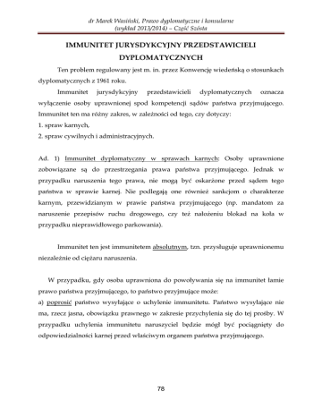 immunitet jurysdykcyjny przedstawicieli dyplomatycznych