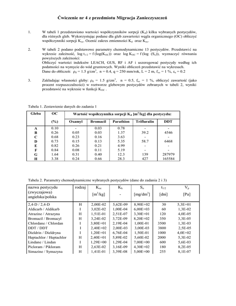 Ćwiczenie nr 4 z przedmiotu Migracja Zanieczyszczeń