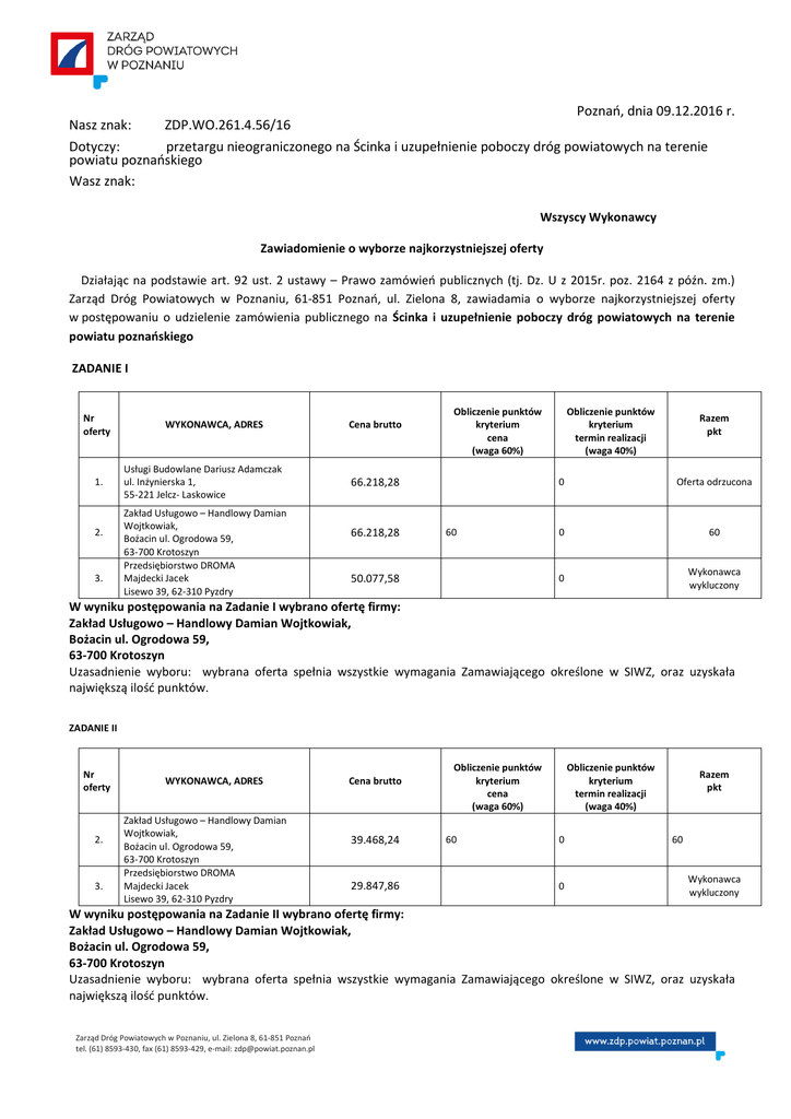 wybór oferty na BIP - Zarząd Dróg Powiatowych w Poznaniu