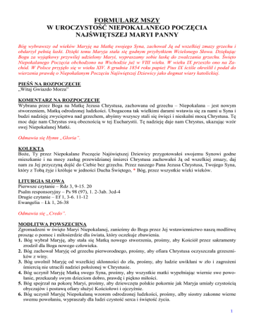 formularz mszy w uroczystość niepokalanego poczęcia najświętszej