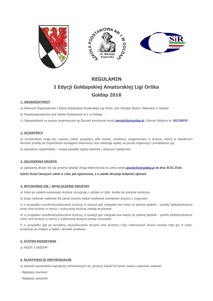 REGULAMIN I Edycji Gołdapskiej Amatorskiej Ligi