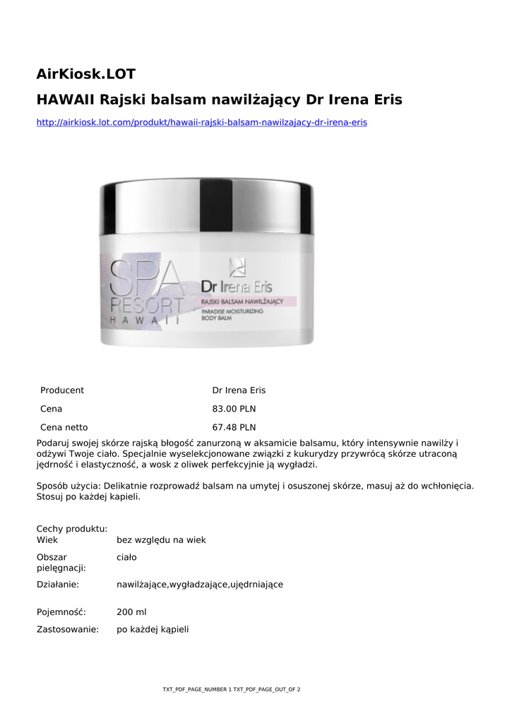 AirKiosk.LOT HAWAII Rajski balsam nawilżający