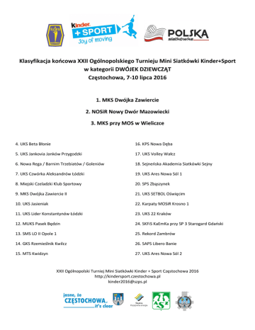 Klasyfikacja końcowa XXII Ogólnopolskiego Turnieju Mini Siatkówki