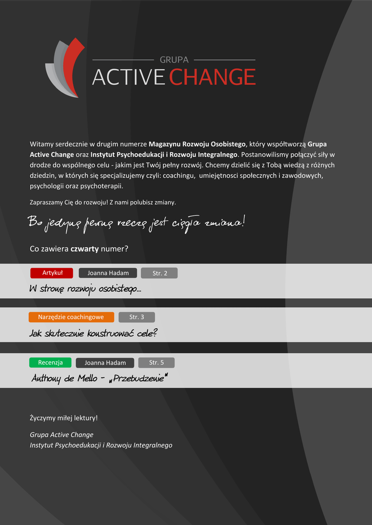 Witamy serdecznie w drugim numerze Magazynu Rozwoju Osobistego, który współtworzą Grupa