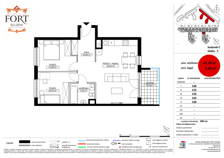 ul. N ul. Do ka lin ws aS no łu sy że ur wi wo ec ka No KL. 1 KL. 2 KL. 4 KL. 5 KL. 7 KL. 8 .6 KL .3 KL N Z L HALL 10,08 m2 budynek C klatka 5 pow. użytkowa: POKÓJ + ANEKS 25,66 m2 POKÓJ 11,08 m2 pow. loggii: piętro ŁAZIENKA 4,53 m2 P POKÓJ 10,43 m2 LOGGIA 5,52 m2 nr mieszkania PARTER - I 148 II 153 III 158 IV 163 V 168 VI - VII - VIII - IX - wysokość mieszkania: 61,78 m2 5,52 m2 cena (bru o) PLN 285cm cm 280 Zakup nieobligatoryjny: N 0m Legenda: ściany konstrukcyjne grzejnik c.o. ściany działowe grzejniki łazienkowe drabinkowe 1m miejsce garażowe: 5m balustrada/przepierzenie szklane parawany szklane na loggi szafa loggiowa wysoka balustrada stalowa wlot wentylacji szafa loggiowa niska ruchoma szklana zabudowa loggi dodatkowy pion kanalizacyjny złączka do podlewania UWAGA: Lokalizację przyborów sanitarnych podano zgodnie z projektem budowlanym. Powierzchnia użytkowa lokalu jest określona na podstawie rozporządzenia Ministra Transportu, Budownictwa i Gospodarki Morskiej z dn. 25.04.2012, w sprawie szczegółowego zakresu i formy projektu budowlanego (DZ. U. z 2012r. POZ. 462), zgodnie z zasadami zawartymi w polskiej normie PN-ISO 9836: 1997, tj.: powierzchnia użytkowa lokalu jest obliczana w metrach kwadratowych z dokładnością do dwóch miejsc po przecinku, dla wymiarów lokalu w stanie wykończonym, na poziomie podłogi, nie licząc listew przypodłogowych, progów itp. Karta katalogowa pokazuje przykładową aranżację. Powierzchnie podano w świetle wykończonych ścian. Karta katalogowa ma jedynie charakter informacyjny, podane powierzchnie mogą ulec drobnym korektom na etapie wykonawczym. ...................................... komórka lokatorska: ...................................... miejsce garażowe z szafą: ...................................... BIURO SPRZEDAŻY FORT SŁUŻEW ul. Nowoursynowska, róg Doliny Służewieckiej Warszawa tel. 22 301 11 11 e-mail: [email protected] www.fortsluzew.pl