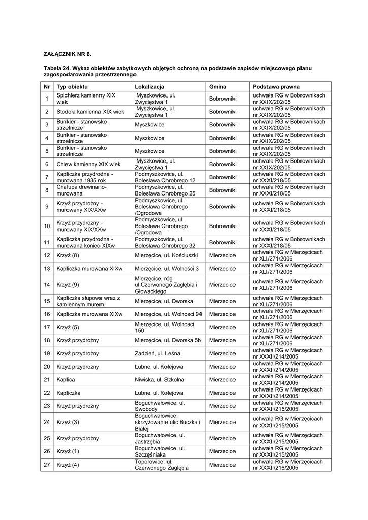 ZAŁĄCZNIK NR 6. Tabela 24. Wykaz obiektów zabytkowych
