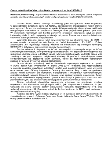 Ocena eutrofizacji wód w zbiornikach zaporowych za lata 2008
