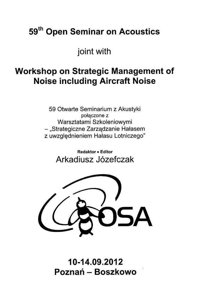 59th Open Seminar on Acoustics joint with Workshop on