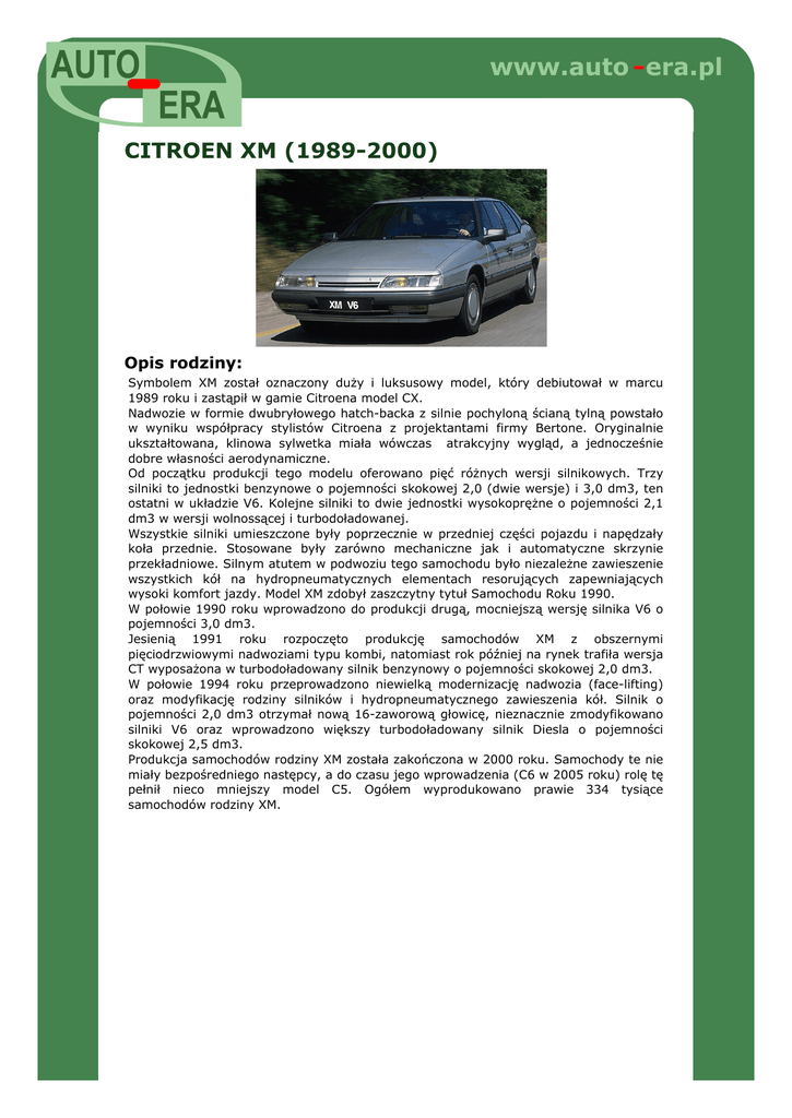 Opis rodziny: CITROEN XM. - AUTO-ERA
