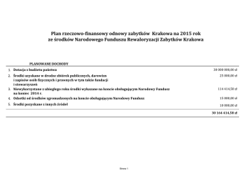 Plan rzeczowo-finansowy odnowy zabytków Krakowa na 2015 rok
