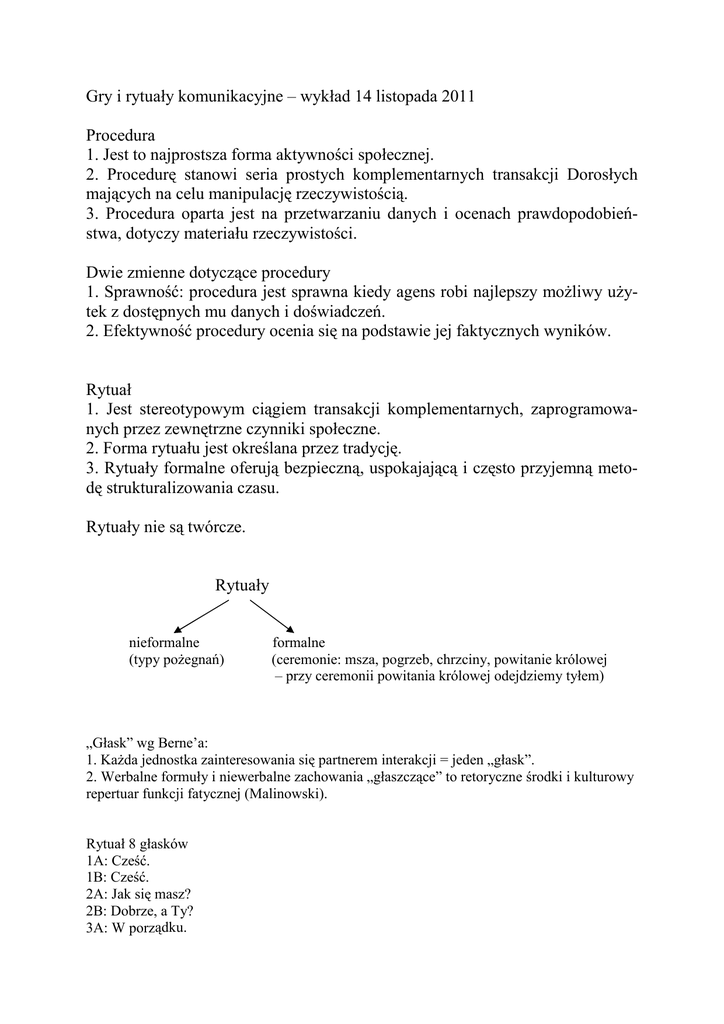 Gry i rytuały komunikacyjne – wykład 14 listopada 2011 Procedura 1