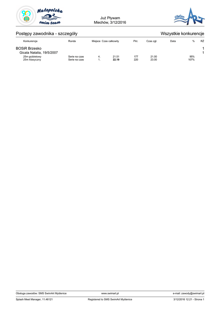 Postępy zawodnika - szczegóły Wszystkie konkurencje