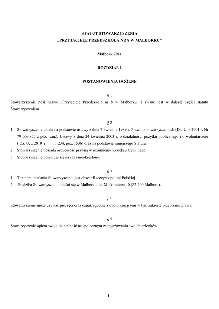 statut stowarzyszenia - Przedszkole nr 8 w Malborku