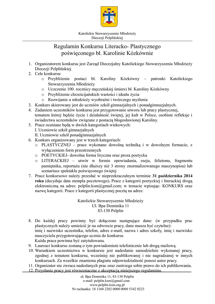 Regulamin konkursu - KSM Pelplin