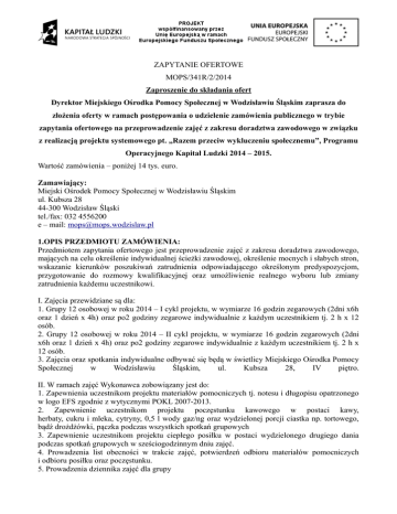 ZAPYTANIE OFERTOWE MOPS/341R/2/2014 Zaproszenie do