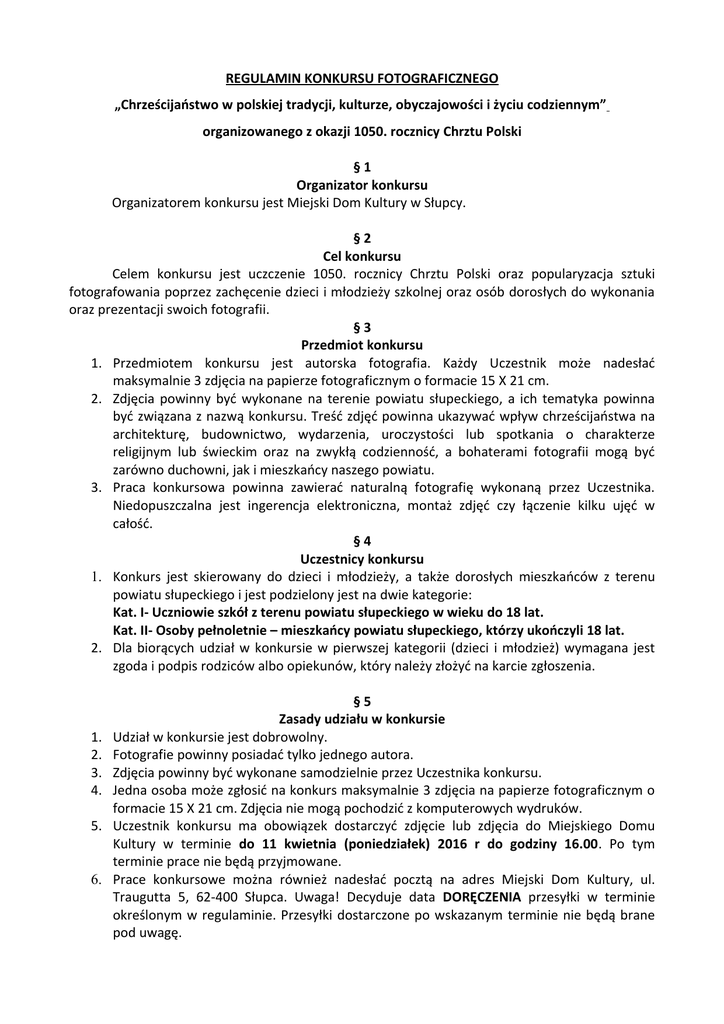 REGULAMIN KONKURSU FOTOGRAFICZNEGO