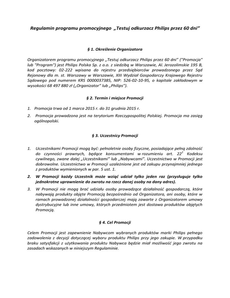 lub "Program") jest Philips Polska Sp. z o.o. z siedzibą w Warszawie, Al. Jerozolimskie 195 B,