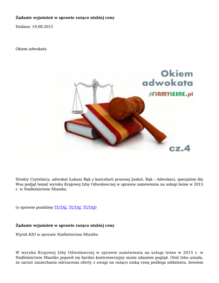 Firmy Leśne - Żądanie wyjaśnień w sprawie rażąco niskiej ceny