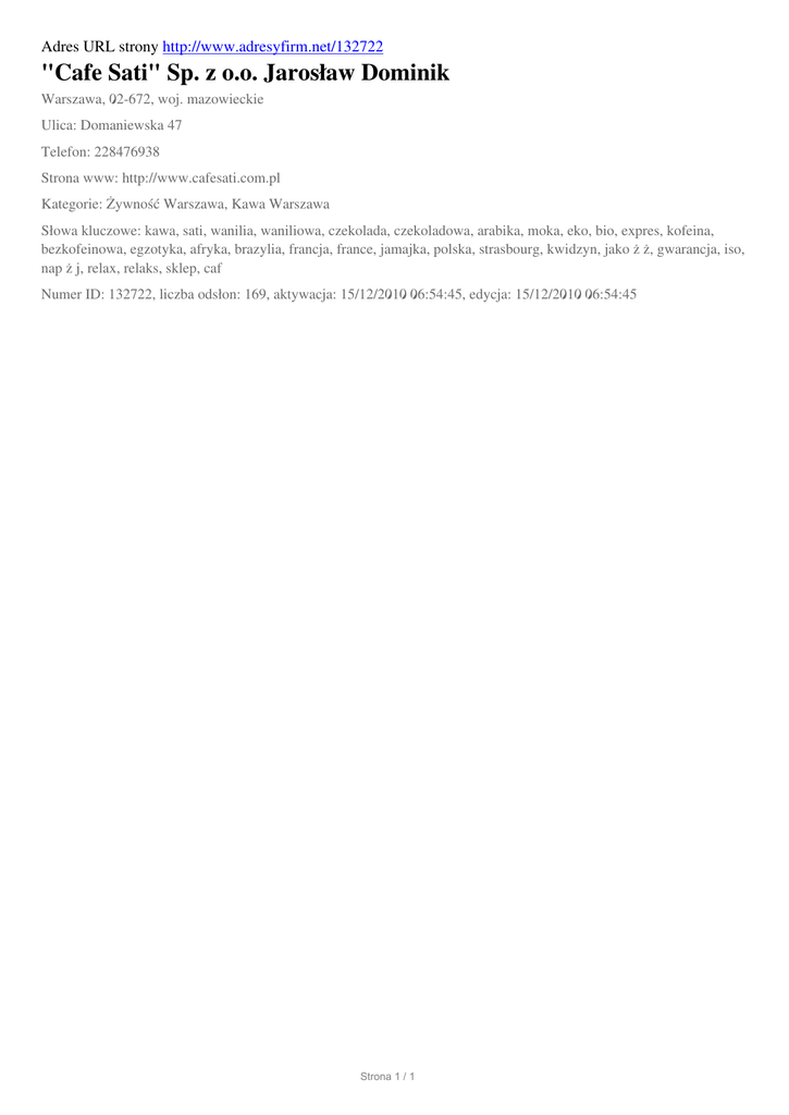 "Cafe Sati" Sp. z oo Jaroslaw Dominik, Warszawa