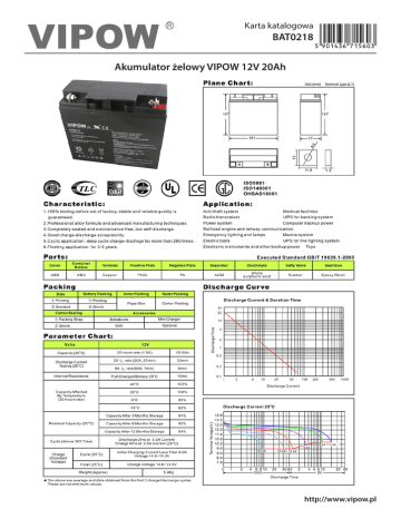 Karta katalogowa BAT0218 Akumulator żelowy VIPOW 12V 20Ah http://www.vipow.pl Karta katalogowa BAT0218 http://www.vipow.pl