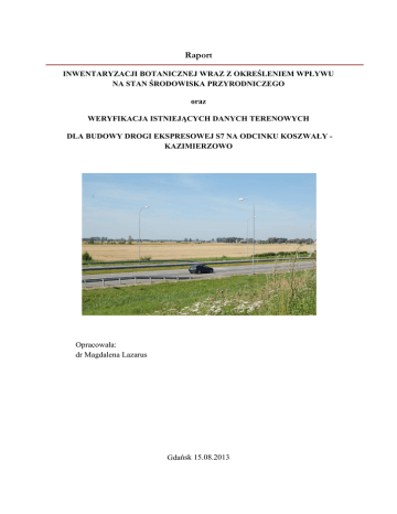 Raport INWENTARYZACJI BOTANICZNEJ WRAZ Z OKREŚLENIEM WPŁYWU NA STAN ŚRODOWISKA PRZYRODNICZEGO oraz WERYFIKACJA ISTNIEJĄCYCH DANYCH TERENOWYCH DLA BUDOWY DROGI EKSPRESOWEJ S7 NA ODCINKU KOSZWAŁY KAZIMIERZOWO Opracowała: dr Magdalena Lazarus Gdańsk 15.08.2013 Spis treści 1. Wstęp........................................................................................................................ 3 2. Metody inwentaryzacji i waloryzacji przyrodniczej.................................................. 4 3. Wyniki inwentaryzacji................................................................................................... 6 4. Rzadkie, zagrożone i chronione gatunki roślin i grzybów…....................................... 13 5. Siedliska przyrodnicze wymienione w Załączniku I Dyrektywy Siedliskowej............. 18 6. Ocena wpływu realizacji inwestycji na szatę roślinną............................................... 20 7. Literatura................................................................................................................... 22 2 1. Wstęp Niniejsze opracowanie powstało na potrzeby raportu oddziaływania na środowisko inwestycji w postaci budowy drogi ekspresowej S7 na odcinku Koszwały – Kazimierzowo. Uwzględniono w nim wyniki własnych, szczegółowych badań terenowych, które porównano z wynikami uzyskanymi w trakcie poprzednich inwentaryzacji zawartych w opracowaniach Narodowego Funduszu Ochrony Środowiska z 2008 i 2010 r. (Kiczyńska i in. 2008, 2010). Planowana do budowy droga ekspresowa będzie przebiegać przez obszar Żuław Wiślanych, który według podziału geobotanicznego (Szafer 1977) jest położony w Krainie Żuławy Wiślane Pasa Równin Przymorskich i Wysoczyzn Pomorskich Działu Bałtyckiego. Zgodnie z regionalizacją Matuszkiewicz (1993) należy on do Okręgu Żuław Wiślanych Krainy Wschodniopomorskiej Działu Pomorskiego. Natomiast według podziału fizycznogeograficznego (Kondracki 2002) – należy on do mezoregionu Żuławy Wiślane makroregionu Pobrzeża Gdańskiego prowincji Niżu Środkoweuropejskiego. Krajobraz delty Wisły, od wieków poddany silnej antropopresji, został przekształcony na skutek prowadzonych na tym terenie prac odwadniających, rolniczego zagospodarowywania, wzmożonego osadnictwa oraz intensywnego odlesiania, które doprowadziło do niemal całkowitego zaniku lasów łegowych, dębowo-grabowych i olsów na tym obszarze (Herbich, Markowski 2005). Żuławy Wiślane charakteryzuje silnie rozbudowana sieć hydrologiczna, szczególnie dotyczy to sieci rowów odwadniających. Ze względu na znaczną żyzność występujących tu gleb, dominującym elementem krajobrazu Żuław są pola uprawne. Występują one w mozaice z użytkami zielonymi oraz wilgotnymi pastwiskami. Udział zbiorowisk naturalnych na omawianym obszarze jest nieduży. Roślinność tego typu, stanowiąca niezwykle cenny element szaty roślinnej Żuław Wiślanych, związana jest niemal wyłącznie z rowami odwadniającymi, ciekami oraz zbiornikami wodnymi, na brzegu których powszechnie występują zbiorowiska szuwarów właściwych oraz ziołorośla nadrzeczne, natomiast w wodzie – zbiorowiska roślin wodnych. Na omawianym obszarze niemal brak lasów. Nieduże zakrzewienia i zadrzewienia związane są najczęściej z osadami ludzkimi (sady, ogrody przydomowe) lub z przydrożami, brzegami rowów, cieków oraz zbiorników wodnych. 3 2. Metody inwentaryzacji i waloryzacji przyrodniczej Prace podzielono na trzy etapy: Etap 1 (lipiec 2012) objął szczegółowe studium dostępnych materiałów, w tym opracowań naukowych (m.in. Piotrowska 1976, Jutrzenka-Trzebiatowski 1991, 2002, 2005, Środa i in. 2002, Afranowicz 2005, Brzeska 2007, Gałka 2011), dostępnych raportów oddziaływania na środowisko sporządzonych dla przedmiotowej inwestycji w poprzednich latach (Kiczyńska i in. 2008, 2010), własnych materiałów niepublikowanych, jak i map topograficznych w skali 1:25 000 oraz zdjęć satelitarnych (http://www.geoportal.gov.pl/). Na podstawie zebranych danych przygotowana listę wszystkich gatunków roślin oraz siedlisk przyrodniczych, o których wiadomo, że występują lub mogą potencjalnie występować na obszarze badań. Następnie zgromadzono i przygotowano niezbędne do przeprowadzenia prac terenowych podkłady map papierowych w skali 1: 10 000. Na podkłady map naniesiono znane stanowiska gatunków roślin szczególnej troski oraz miejsca występowania siedlisk przyrodniczych. Kolejnym etapem było opracowanie szczegółowego harmonogramu prac terenowych. Etap 2 objął szczegółowe prace terenowe, które przeprowadzono w sezonie wegetacyjnym w 2012 roku (sierpień i wrzesień) oraz w 2013 roku (czerwiec i lipiec). Prace te miały na celu identyfikację wszystkich cennych przyrodniczo zbiorowisk roślinnych oraz stanowisk chronionych, rzadkich i zagrożonych gatunków roślin oraz grzybów (tzw. gatunków szczególnej troski). Szczegółową inwentaryzacją został objęty obszar planowanej inwestycji wraz z terenami bezpośrednio do niej przyległymi (do 250 m od osi drogi), na które inwestycja może mieć niekorzystny wpływ. Identyfikacji stanowisk gatunków oraz płatów zbiorowisk dokonano metodą marszrutową (Faliński 1990-1991). Kartowanie roślinności, w tym siedlisk przyrodniczych, wykonano w terenie na podkładzie mapy topograficznej w skali 1:10 000. W przypadku gatunków szczególnej troski, odczytano współrzędne geograficzne dla punktu centralnego ich stanowisk przy pomocy uprzędzenia GPS. W celu prawidłowej identyfikacji siedlisk przyrodniczych z Załącznika I Dyrektyw Siedliskowej uwzględniono cechy diagnostyczne, charakterystyki fizjonomii i struktury oraz reprezentatywne gatunki zawarte w Poradnikach ochrony siedlisk i gatunków Natura 2000 (Herbich 2004). 4 Etap 3 objął analizę zebranych danych, przygotowanie ostatecznego opracowania kartograficznego oraz tekstowego wraz z listą przew