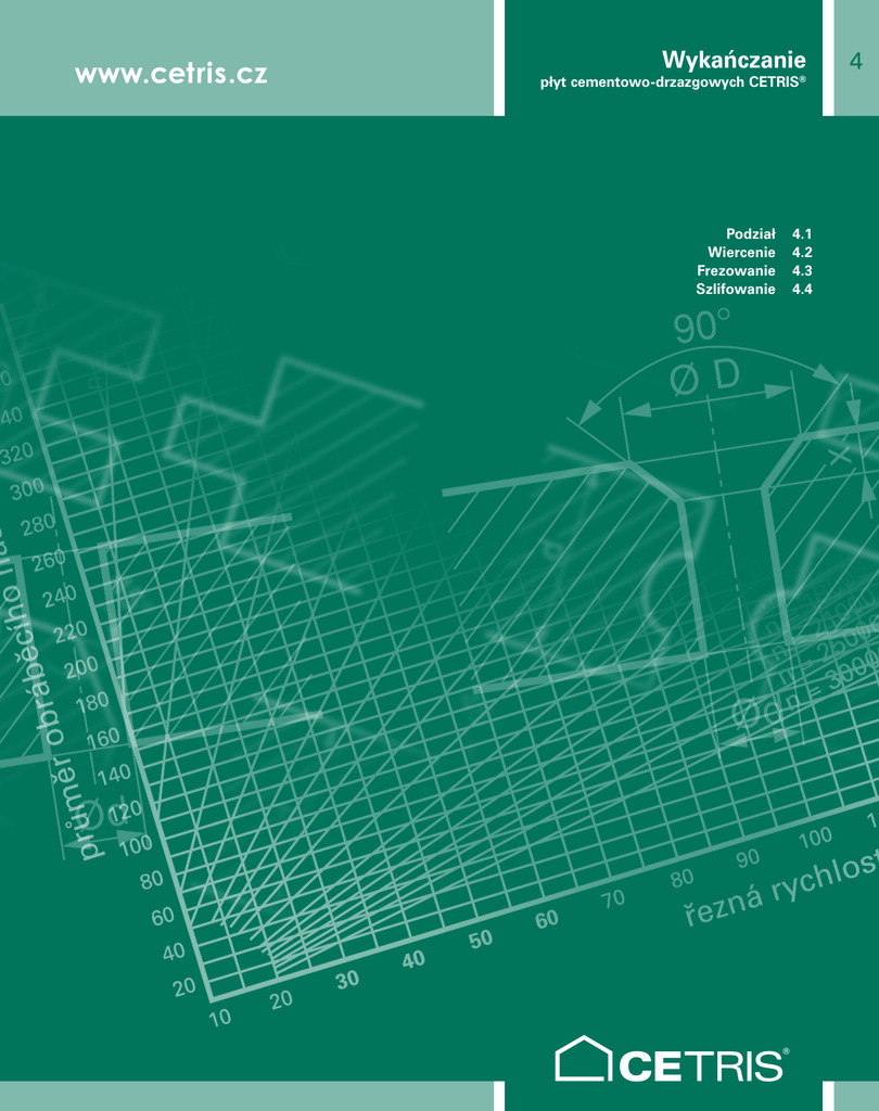 Wykańczanie płyt cementowo-drzazgowych CETRIS® Podział Wiercenie Frezowanie Szlifowanie 4.1 4.2 4.3 4.4 4 Wykańczanie płyt cementowo-drzazgowych CETRIS® Dużą zaletą płyt cementowo-drzazgowych CETRIS® jest to, że można je obrabiać za pomocą wszystkich zwykłych maszyn do obróbki drewna. Do profesjonalnego wykańczania płyt CETRIS® powinny być stosowane tylko narzędzia z węglikiem spiekanym. Płyty CETRIS® można ciąć, wiercić, frezować i szlifować. Optymalna prędkość cięcia Podział płyt można prowadzić bezpośrednio w zakładzie produkcyjnym na specjalnym urządzeniu według wymagań klienta. Jeżeli klient chce prowadzić podział płyt na urządzeniu własnym, zalecamy stosowanie zwykłych narzędzi do dzielenia drewna, wykończone węglikiem spiekanym (płytki SK). Aby osiągnąć optymalną prędkość cięcia 30 – 60 m/s należy stosować maszyny z elektroniczną regulacją obrotów. Średnica narzędzia tnącego D (mm) 4.1 Podział Podczas cięcia płyt CETRIS® tworzy się bardzo drobny pył. Płyty o wykończonej powierzchni (CETRIS® DOLOMIT NEW, CETRIS® FINISH, CETRIS® PROFIL FINISH) należy ciąć zawsze od strony dolnej, by nie doszło do naruszenia strony górnej powierzchni wykończonej. Chociaż pył nie zawiera żadnych substancji szkodliwych dla zdrowia, dla ochrony środowiska pracy zaleca się zainstalowanie odpowiednich odciągów. Zależność przebiegu narzędzia tnącego od prędkości cięcia (n = obroty narzędzia) 4 Prędkość cięcia (m/s) 4.2 Wiercenie 4.3 Frezowanie 4.4 Szlifowanie Zgodnie z planem wierceń przedstawionych przez klienta, płyty można wiercić, w tym zagłębienia, bezpośrednio w zakładzie produkcyjnym. Płyty cementowo-drzazgowe CETRIS® można wg wymagań klienta frezować (np.: półwpust, wpust i wypust, ścięcie krawędzi itp.). Jeżeli klient będzie frezować płyty na urządzeniu własnym, obowiązują Szlifowanie maszynowe całych powierzchni płyt cementowo-drzazgowych CETRIS® wykonywane jest w zakładzie produkcyjnym przy wykonywaniu szlifowanych płyt podłogowych CETRIS® PDB z powodu obniżenia tolerancji grubości do ±0,3 mm. d d min. d = 12 mm strona 32 45 45 ° d ° min. d = 8 mm 2 3. d d Do wiercenia płyt CETRIS® można zastosować wiertła do metalu (HSS). W razie wiercenia ręcznego dobrze jest zastosować wiertarkę elektryczną z elektroniczną regulacją obrotów. Płyty o wykończonej powierzchni (CETRIS® DOLOMIT NEW, CETRIS® FINISH, CETRIS® PROFIL FINISH) z zasady należy wiercić od strony górnej (wykończonej), podczas wiercenia od strony dolnej mogłoby dojść do uszkodzenia powierzchni górnej. d min. d = 16 mm d 4 go te same zasady, jak w przypadku poprzedniego sposobu wykańczania. Przy frezowaniu należy jednak wziąć pod uwagę właściwości mechaniczne (min. grubość) płyt CETRIS®. Zalecana prędkość skrawania mieści się w zakresie 25 – 35 m/s. Szlifowanie ręczne można wykonywać na styku płyt tam, gdzie niezbędne jest usunięcie nierówności powierzchni lub chropowatość powierzchni płyty. Stosowane są elektryczne szlifierki ręczne z papierem ściernym o uziarnieniu 40 – 80. Również w tym przypadku należy zainstalować odciągi powstałego pyłu. Łączenie płyt cementowo-drzazgowych CETRIS ® Wkręcanie 5.1 5 Łączenie płyt cementowo-drzazgowych CETRIS® Płyty CETRIS® można mocować do konstrukcji śrubami, spinkami, ewentualnie nitami. Stosowanie gwoździ lub wkrętów do płyt gipsowo-kartonowych nie jest zalecane. Wszystkie rodzaje elementów łączących muszą być w wykonaniu odpornym na działanie korozji. Alternatywnie płyty CETRIS® można przymocować do konstrukcji nośnej przez klejenie lub za pomocą uchwytów. Obydwa sposoby stosowane są zwłaszcza do mocowania płyt w systemie wiszących elewacji wentylowanych – patrz. rozdział 8.7.7 Materiały uzupełniające. 5.1 Wkręcanie 5.1.1 Kotwienie we wnętrzach Opór wyciągnięcia wkręta z płyty cementowo-drzazgowej CETRIS® A) Określenie oporu wyciągnięcia wkręta prostopadle do płaszczyzny płyty: Metoda testu: EN 320 F d Rodzaj wkręta: CETRIS 4,2 × 35 mm (nawiercenie wstępne otworu w płycie o średnicy 3,5 mm) Grubość płyty d Opór 8 mm 10 mm 12 mm 597 N 788 N 1 305 N B) Określenie oporu wyciągnięcia wkręta równolegle do płaszczyzny płyty: d d Najlepsze do mocowania płyt CETRIS® są wkręty samonacinające z gwintem dwuzwojowym, z utwardzonym ostrzem i łbem wpuszczonym z ostrzem do wgłębienia. Jako materiał uzupełniający można zastosować wiertła z oznaczeniem handlowym CETRIS®, średnica 4,2 mm, długość 35, 45, 55 mm do łączenia dwu płyt CETRIS® w systemie podłóg panelowych lub do mocowania płyt do konstrukcji poziomych i pionowych (podłogi, ściany działowe, sufity podwieszane itp.) Przy mocowaniu wkręt powinien wchodzić w konstrukcję drewnianą co najmniej do 2/3 swojej długości, do przymocowania płyt podłogowych wystarczy zastosować wkręt, którego długość przekracza grubość płyty o 20 mm. 5.1.1.2 Przykręcenie do blachy Do mocowania płyt CETRIS® do płaskich kształtowników przeznaczony jest wkręt CETRIS 4,2 × 25 mm (jego gwint sięga do samego łba) lub wkręty 4,2 × 35, 45, 55 mm (gwint do ok. 2/3 długości). Jako konstrukcję nośną stosuje się najczęściej ocynkowane profile CW i UW. Profile poziome UW mocuje się poprzez podkładki dźwiękoszczelne do konstrukcji stropu (podłogi). Do profili UW wkłada się pionowe profile CW, które powinny być o ok. 15 mm krótsze niż wysokość pomieszczenia. Pokrywającą ściany płytę CETRIS® zazwyczaj mocuje się tylko do profili pionowych (profile słupkowe – CW). Przy mocowaniu do profili blaszanych wkręt musi być dłuższy od grubości płyty minimalnie o 10 mm. Płytę CETRIS® należy wcześniej przewiercić. W miejscu szczeliny pionowej na pionowym profilu CW profilu należy najpierw zamocować płytę CETRIS® znajdującą s