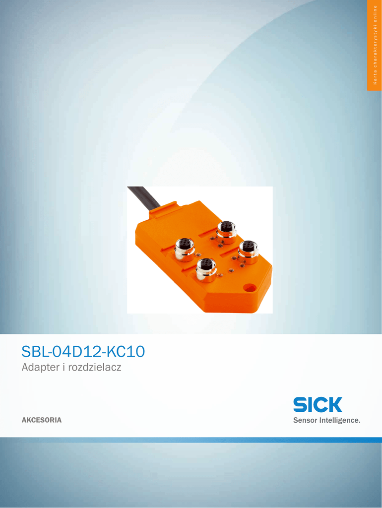 Karta charakterystyki online SBL-04D12-KC10 Adapter i rozdzielacz AKCESORIA SBL-04D12-KC10 | Adapter i rozdzielacz AKCESORIA A B C D E F H I J K L M N O P Q R S T Informacje do zamówienia Typ Nr artykułu SBL-04D12-KC10 więcej wersji urządzeń i akcesoriów 6028395 www.sick.com/Adapter_i_rozdzielacz Szczegółowe dane techniczne Dane techniczne Rodzina akcesoriów Skrzynki rozdzielcze Typ przyłącza – głowica A Gniazdo, M12, 5 pinów Technika przyłączeniowa Wolny koniec przewodu Liczba gniazd wtykowych 4 Sygnały na gniazdo (przyporządkowanie gniazda) 2 x na gniazdo Interfejs wyjściowy Przewód podstawowy 10 m Przewód podłączeniowy 10 m, 11 żył Materiał przewodu PUR, bezhalogenowy Kolor przewodu Czarny Przekrój poprzeczny przewodu 0,5 mm² 1 mm² Materiał obudowy TPU Kolor obudowy Pomarańczowy Materiał, nakrętka radełkowa CuZn, niklowany Dioda LED ✔ Napięcie znamionowe ≤ 32 V Napięcie robocze 10 V DC ... 30 V DC Obciążalność prądowa 11 A, łącznie przy 30°C (patrz współczynniki korekcyjne EN 60204-1) Łącznie przy 30°C (patrz współczynniki korekcyjne EN 60204-1) Maksymalna obciążalność prądowa na gniazdo wtykowe ≤ 2 A Wskazówka Podłączenie czujników i elementów wykonawczych Zakres dostawy Z 2 nasadkami ochronnymi i 10 tabliczkami opisowymi Temperatura robocza –15 °C ... +90 °C Stopień ochrony IP67 1) 1) Tylko w stanie przykręconym z odpowiednim elementem współpracującym. Klasyfikacje ECl@ss 5.0 27279201 ECl@ss 5.1.4 27279201 ECl@ss 6.0 27279201 2 AKCESORIA | SICK Karta charakterystyki online | 2017-03-04 11:51:08 Informacje mogą ulec zmianie bez powiadomienia SBL-04D12-KC10 | Adapter i rozdzielacz AKCESORIA ECl@ss 6.2 27279201 ECl@ss 7.0 27279201 ECl@ss 8.0 27279201 ECl@ss 8.1 27279201 ECl@ss 9.0 27440108 ETIM 5.0 EC002585 ETIM 6.0 EC002585 UNSPSC 16.0901 31163032 Rysunek wymiarowy (Wymiary w mm) 30.3 (1.19) 60 (2.36) 18 3 1 B B A A B B 107 (4.21) A 4 2 4.5 (0.18) 3 A 118 (4.65) 2 M12x1 5 4 36 (1.42) (0.71) 1= 3= 5= 2= 1 brn (L+) blu (M) grn/yel (PE) [1] gra/pnk [2] red/blu [3] wht/grn [4] brn/grn 4 = [1] wht [2] grn [3] yel [4] gra 39 (1.54) 2017-03-04 11:51:08 | Karta charakterystyki online Informacje mogą ulec zmianie bez powiadomienia AKCESORIA | SICK 3 Karta charakterystyki online SICK W SKRÓCIE Firma SICK należy do czołowych producentów inteligentnych czujników i rozwiązań wykorzystujących czujniki do zastosowań przemysłowych. Wyjątkowa gama produktów i usług stwarza idealną podstawę dla bezpiecznego i wydajnego sterowania procesami, ochrony ludzi przed wypadkami i unikania zanieczyszczenia środowiska. Mamy szerokie doświadczenie w różnych branżach i znamy występujące w nich procesy oraz wymagania. Nasze inteligentne czujniki zapewniają klientom dokładnie to, czego im potrzeba. W centrach aplikacji w Europie, Azji i Ameryce Północnej rozwiązania systemowe są testowane i optymalizowane pod kątem potrzeb konkretnych klientów. Wszystko to sprawia, że jesteśmy niezawodnym dostawcą i partnerem w zakresie rozwoju. Naszą ofertę dopełniają kompleksowe usługi: rozwiązania SICK LifeTime Services wspierają klientów w trakcie całego cyklu użytkowania maszyny i dbają o bezpieczeństwo i produktywność. Właśnie tak rozumiemy hasło „Sensor Intelligence”. BLISKO KLIENTA NA CAŁYM ŚWIECIE: Osoby kontaktowe i pozostałe lokalizacje - www.sick.com SICK AG |Waldkirch|Niemcy |www.sick.com